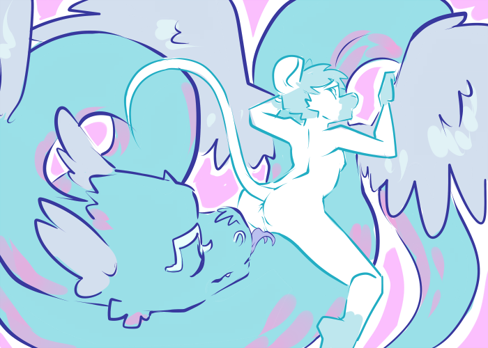 “Uh, can I still play even though I don’t wear clothes?” Raithe twists in the air a little self consciously.