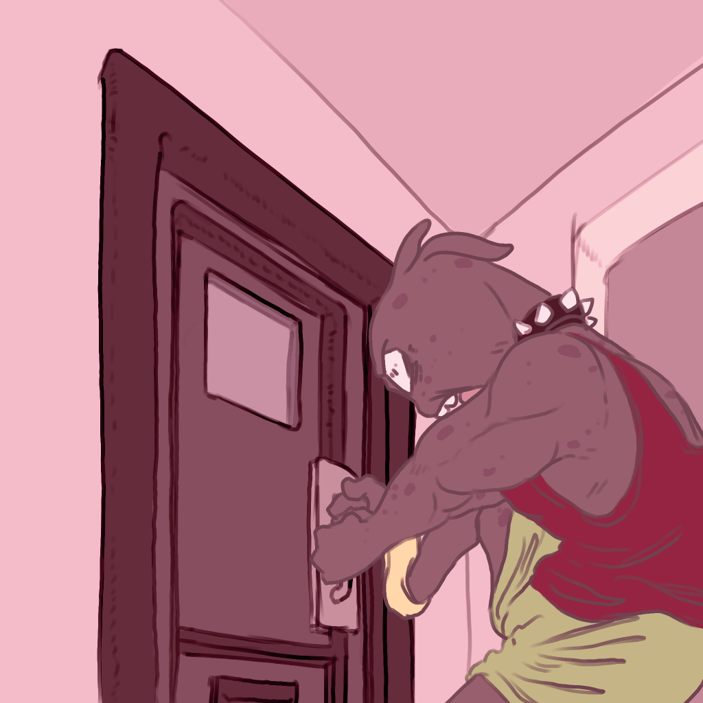 "It's a date then," she says before turning towards the door. She takes a few paces in its direction, then looks back at you. "See ya in a bit, Pancakes."