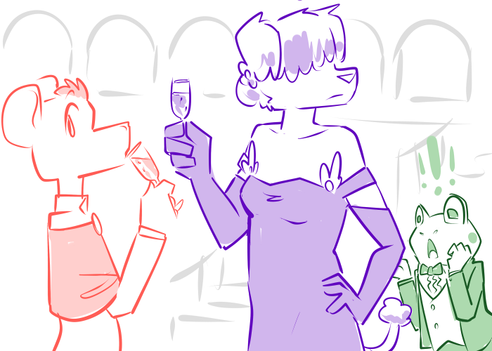 Bailey gives him a questioning look at the end there, but scurries off regardless. A few minutes later the impresario returns, huffing with exertion, “I swear, I’m going to have a heart attack with all of the running around tonight.” He pauses to let himself deflate a little, “Okay, what’s the plan?”