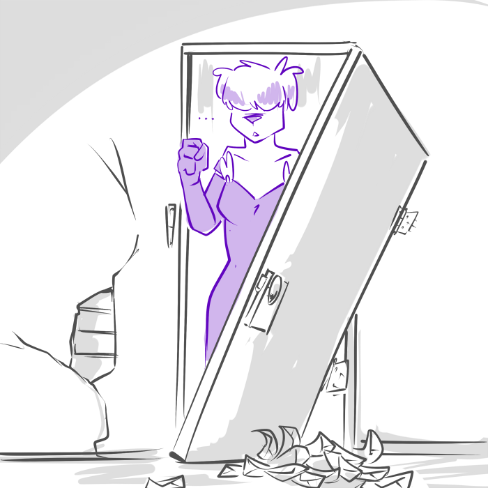 “But- but I don’t... What’ll I do? I don’t know where to go...” Cliff’s eyes reflect a lost expression, his cheeks seem to sink inward.