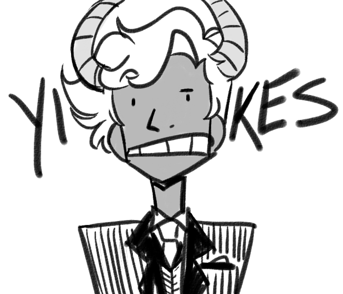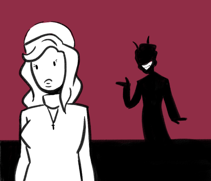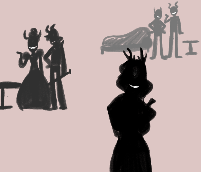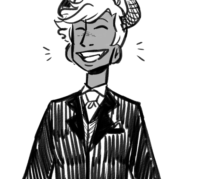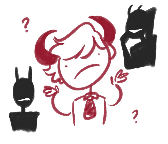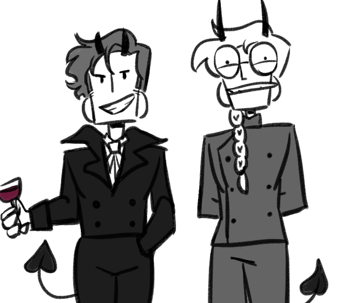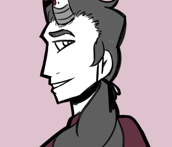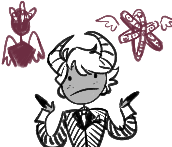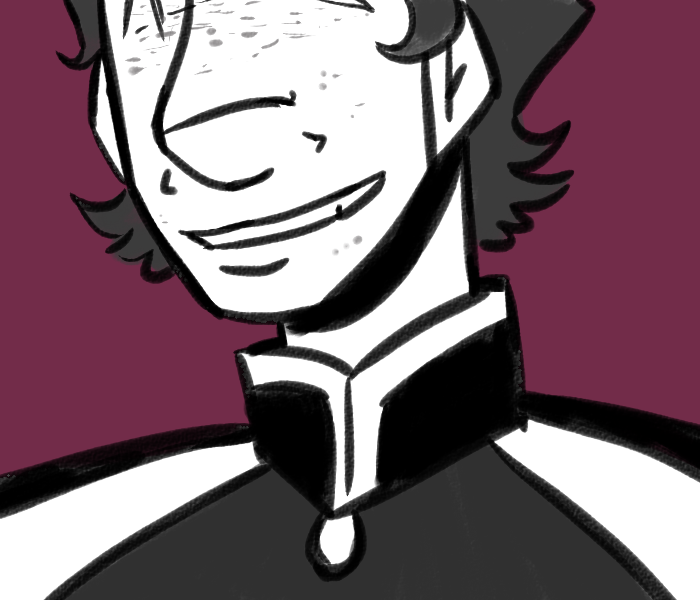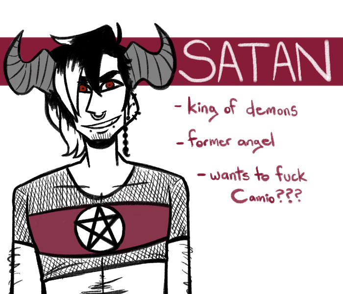 Now that you're getting a closer look at Arty, there's a lot about him that you hadn't noticed from across the room. His halo is even brighter up close, but his wings are hidden, probably shapeshifted away by choice. He hasn't offered much about what he actually does as an angel, but he has what looks like a knife strapped to his hip, instead of the sabre most diplomats are issued, or the longsword most soldiers wear in dress uniform. And then there's his eye...
