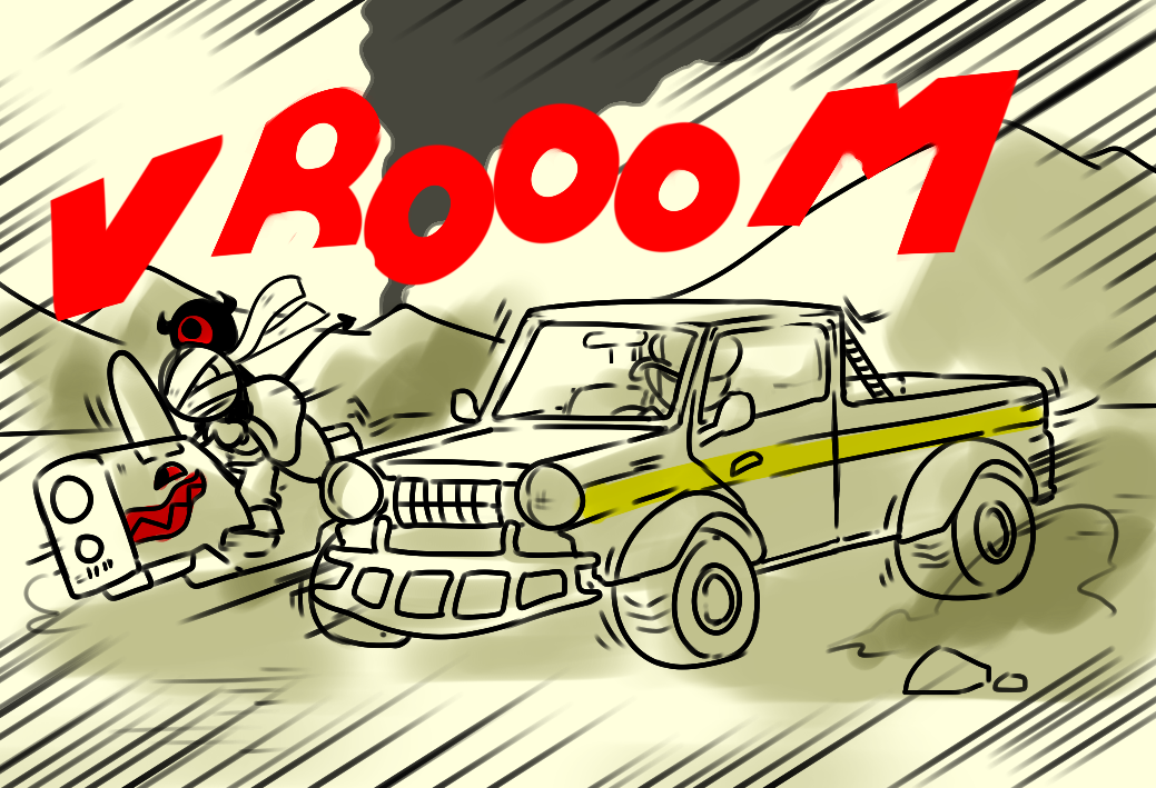 Anyway, my recommendation for taking out the car to your right is to keep it simple and just send a Caesura Sharp into the driver's face. Then keep varyin' things so they don't know what to expect. Also, try to put any big rocks you come across between you and your pursuers for cover.