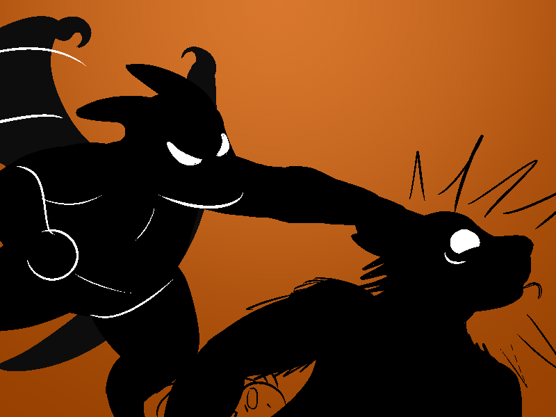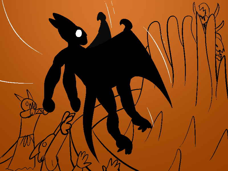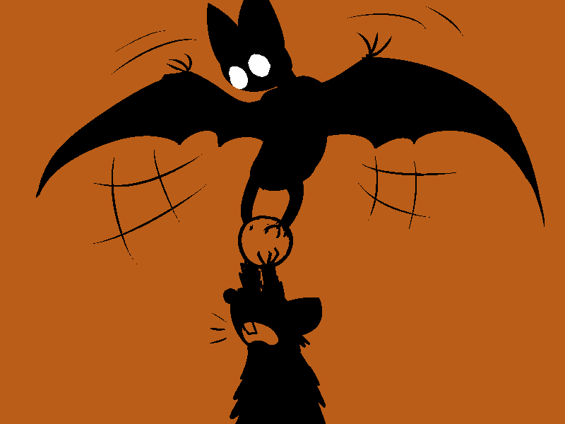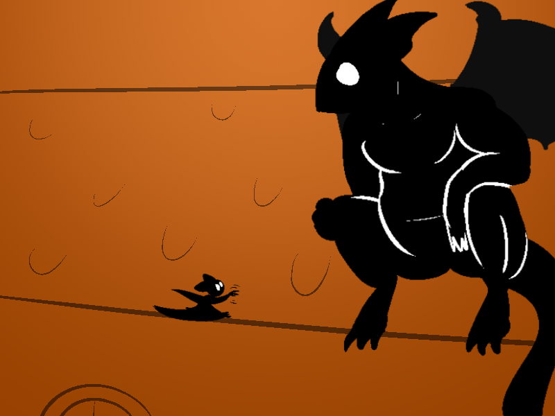 I let go of the stick and do a evasive maneuver, easily done without the weight of the stick, and enter it's cloak! It starts making panicked noises as I crawl around in there and bite him all around! Then...
