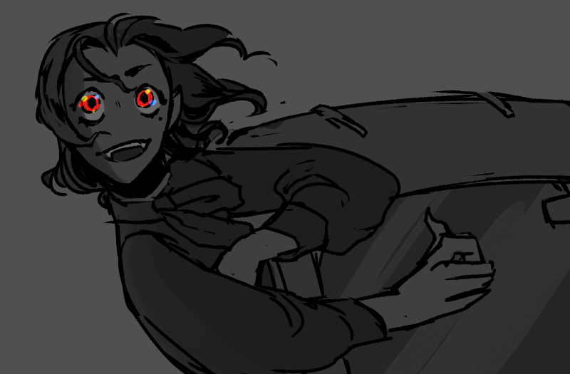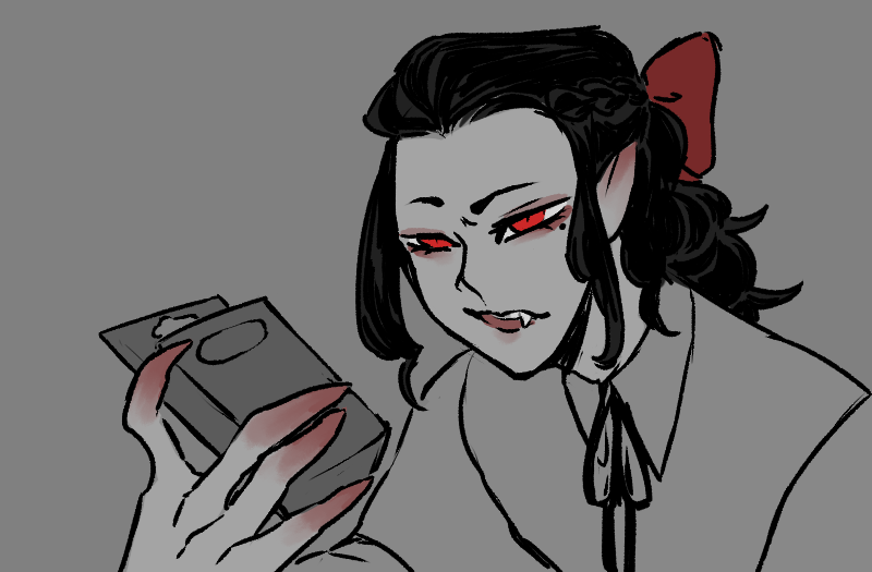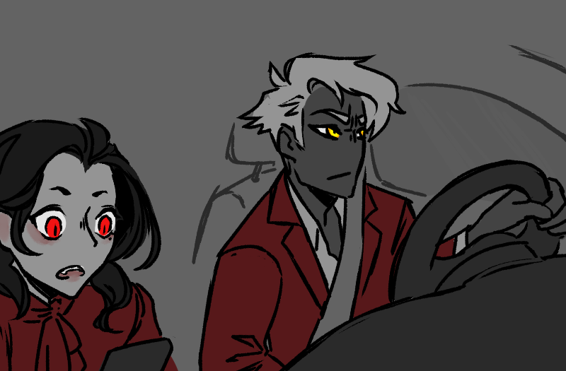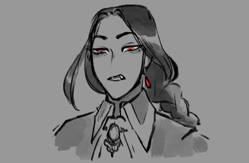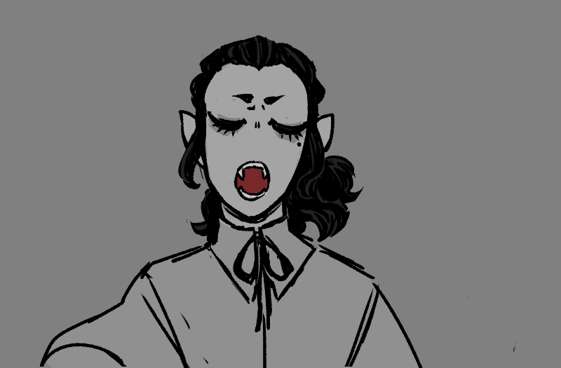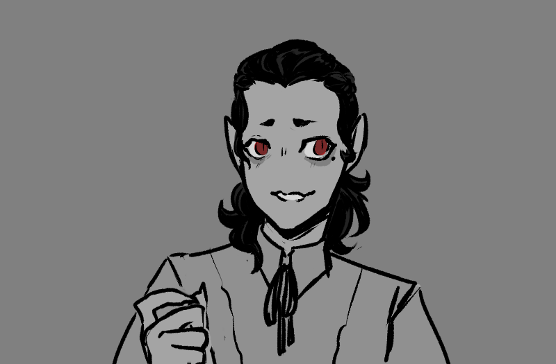 “Yes! My turn now.” Pascal heaves himself back upright, propping his chin up on his hand. “Hm. First I will do it the way my covenmates did it.” He clears his throat, and when he starts speaking again, his voice is high and lilting. “Oh, Ricardo, how handsome you are! Ricardo, I envy your thick hair. What a lovely color it is! Like gold! How enviable you are! Ricardo, I wish my jaw was strong like yours. Oh, I hate you, Ricardo, for being so —”