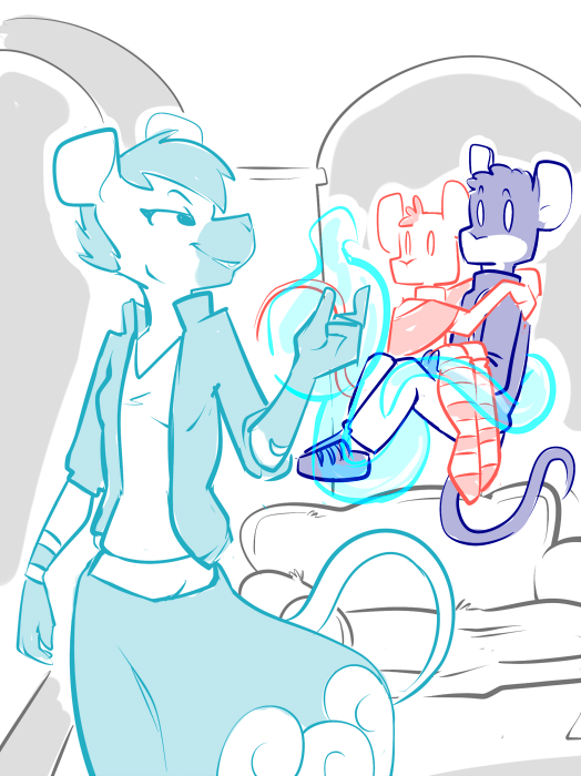 That one moment of perfect balance finds its end as the mice lock together and the boys finally reach their end. Tight and hot, Casey's body welcomes them as they bury their shafts and let go, feeling one another pulsing within her and separated by millimeters. Twin cocks fill her with white hot sprays of cum as clenching muscles desperately cry out for more. Everything dissolves into a grasping, sticky mess, where no one can tell where they one mouse starts and the other ends.