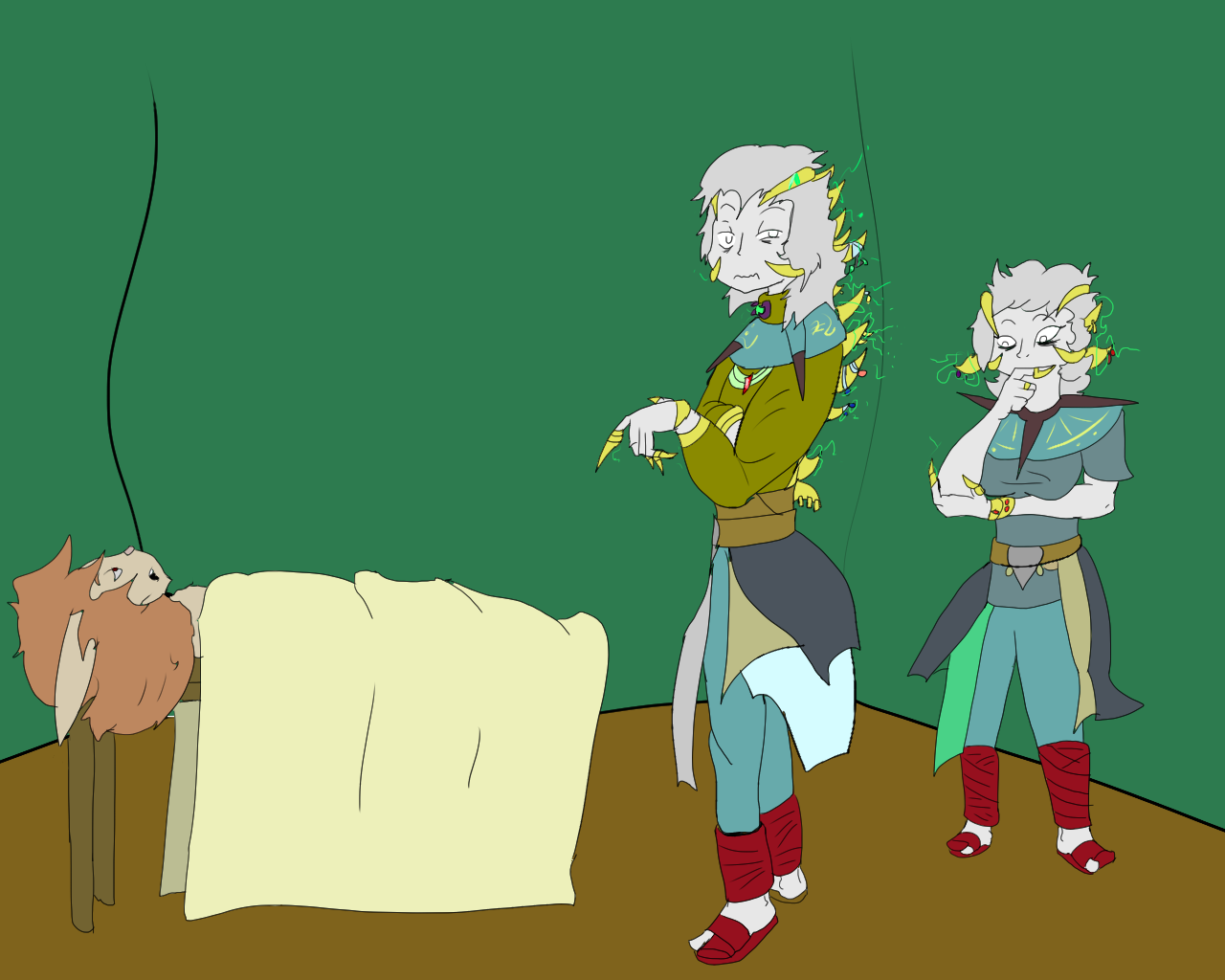 Oh, you're interested in me now? Well, I am doing...nothing. This exchange is basically a glorified house arrest. That daoine Kellach has me kept in his quarters these little pavosh gave him for helping them take back that fort that you and Veni cleared out. He didn't trust me at first, but I think he likes me now. Course he still won't let me leave. None of the tuv let me leave.