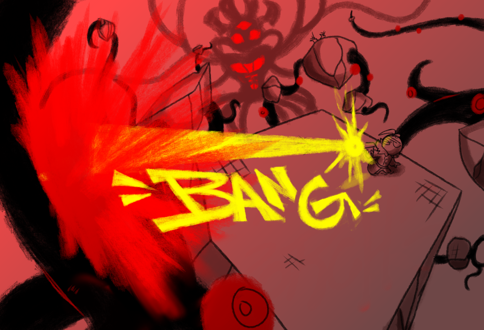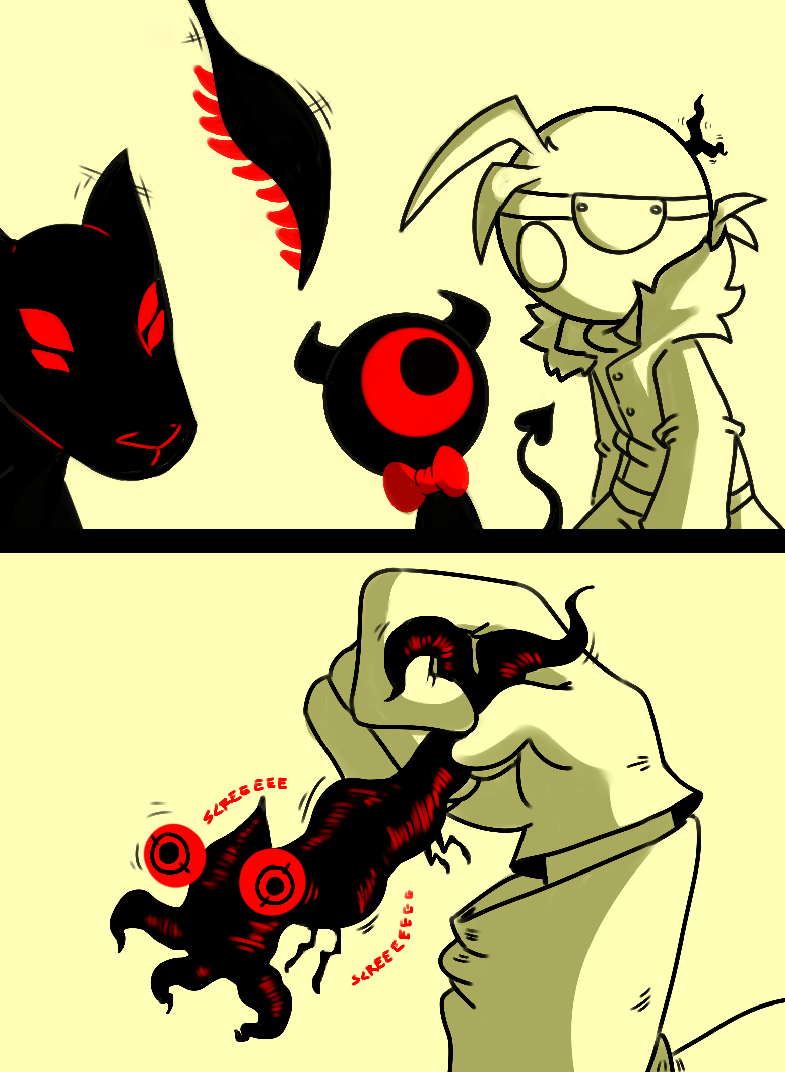 Pretty soon his screams are drowned out by the horrible garbled growls and roars of the Nightmare below.