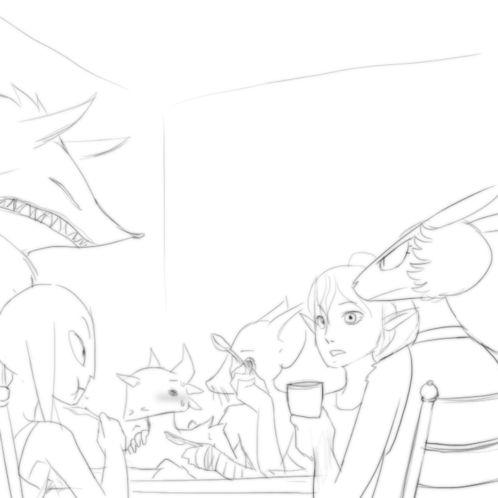 "Indeed. Our herbalist, trapper, tracker and cook is Iesgip, a fine and trustworthy kobold. She is very driven to help in the fight against evil. From the same background comes our carpenter Nakraska. He is very laid back and doesn't make himself known most of the times. Last but not least is Sticks, our master of stealth and locks. She used to be a halfling, but was turned into catfolk by magic recently. She has taken it quite well, luckily.