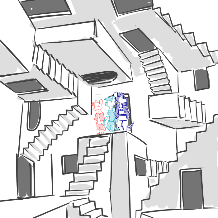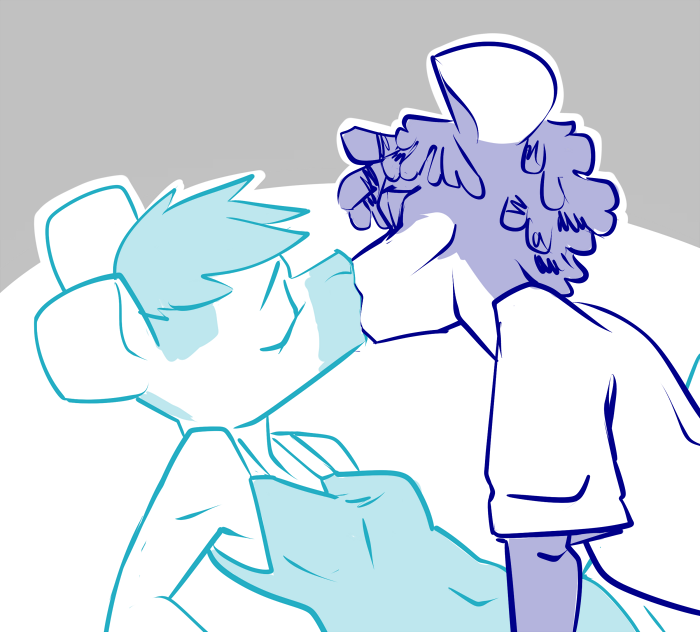 “Heyyy, how can we trust you?” Gabe scratches his chin and squints, his eyes flickering between them. ”You both told us the rules, so what if you’re both liars?”