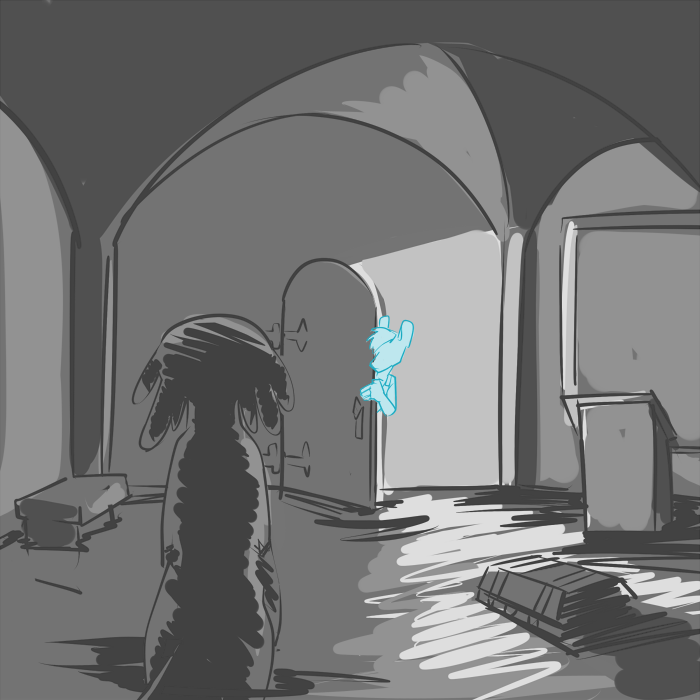 “Okay, how about this: you,” Casey points to the jackal, “What would your partner say is the incorrect door?” She folds her arms with a smug grin.