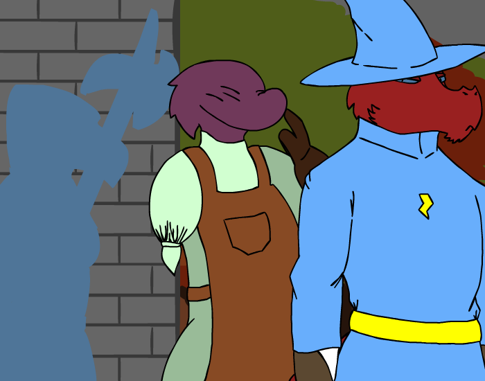 >The two stooges have to stay out here, this does not concern them. Besides it could be dangerous.