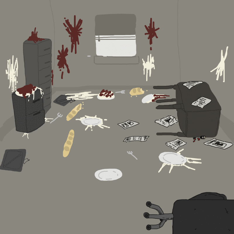 "No. . .It was the spaghetti and meatballs all over the walls!,it was like a food bomb went off-More importantly-Who tied me up?. . ."