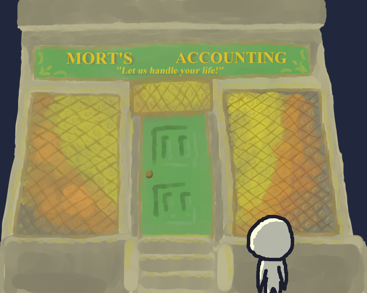 >"Hello, sir! Your receptionist seems pretty grumpy. I take it the lack of any paying customers has something to do with it?"