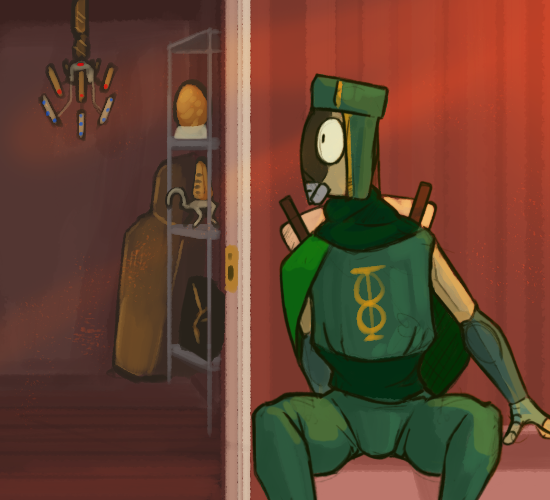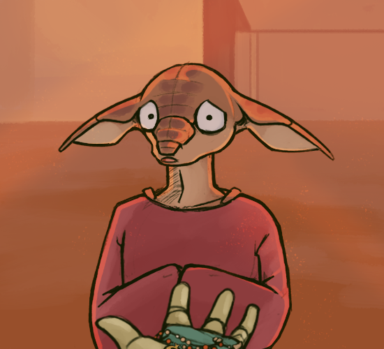 I’ve pocketed the bracelet and stand up—brushing dust off my costume. I just have so many questions but I don’t want to cause trouble asking about the missing delivery boy—if he had any knowledge of it.