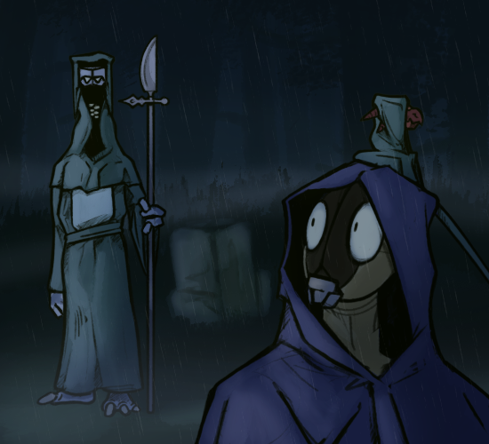 Well that’s just great. No wonder everyone’s been giving me dirty looks! Guess I’ll take what I can and skedaddle immediately after this. I’ll feel safer out in the wild, even. The ruins are too far down the path, it’ll be way too dark to even reach them. The farm? Maybe... I'll have to be super nice if I run into the Huntoon.