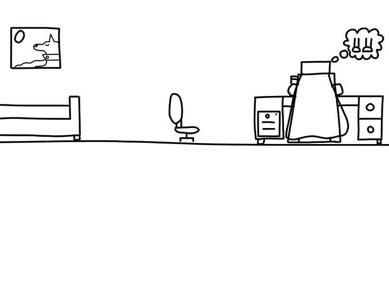 You could use your arms as impromptu legs, but it would be rather unstable. It only takes you a moment to decide that for now, at least, you will refrain from taking Simon's trinkets as hostages - after all, if he decides to continue being a jerk you can always do it later. However, you will give his computer a brief look to see if it can hint at your legs' whereabouts.
