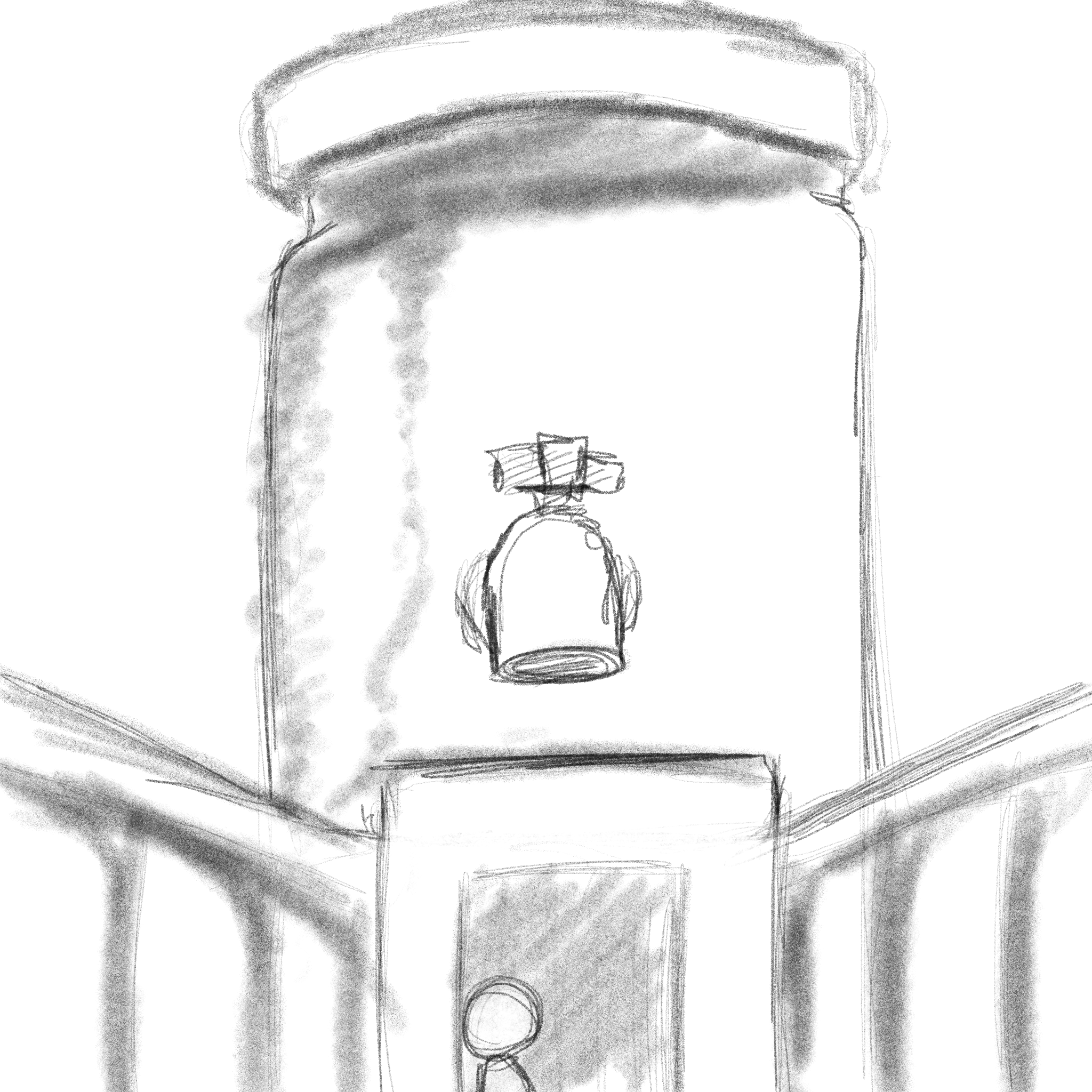 Visiting the church of punch to see the Punch God, the punch tank seems near empty. A priestess awaits at the entrance, seemingly nervous and looking about.