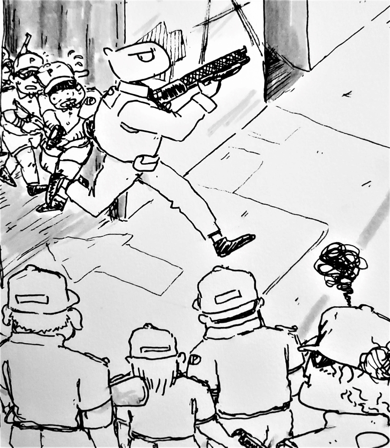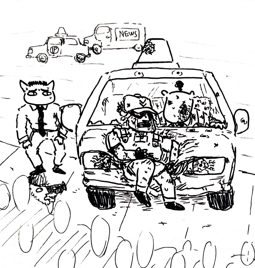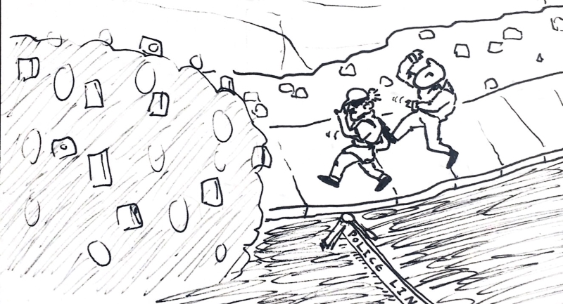 >"Unfortunately, getting shot at made us have to expedite the investigating process a little. If your cops are still too scared to do it, we can take some pictures tomorrow."