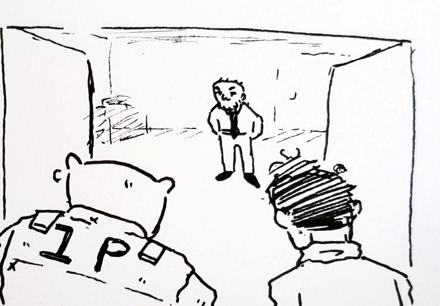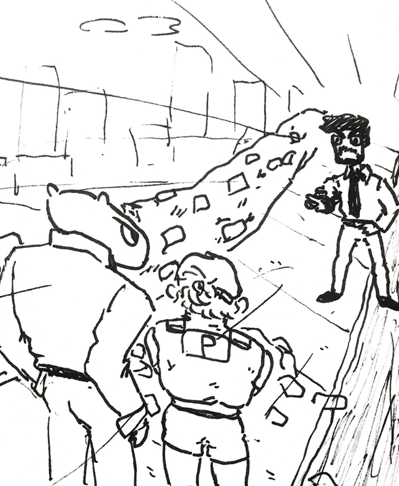 >"Like I said, I knew you scrubs would make a mess of checking the bridge. Your guys hardly even looked on our end, probably too scared to step over the jurisdiction line. Me and ERIK had to promise to give up anything we found to your precinct, but we got permission to check out our end of the bridge. That pin was sitting in the grass, inches away from a gash in the bricks the size of your head. We checked the underside, and it definitely looked like the starting point for whoever climbed out to get Mr. Mayor."