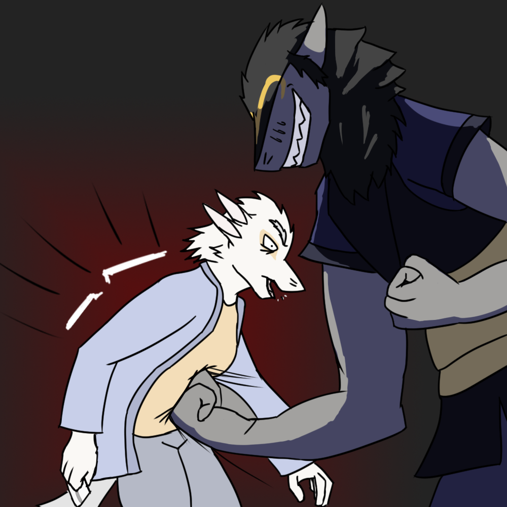 Something slams into me, pushing me back. Stinging pain courses through my body - her fist digs into the underside of my chest, leaving me winded. For a moment, my feet lift off the ground.