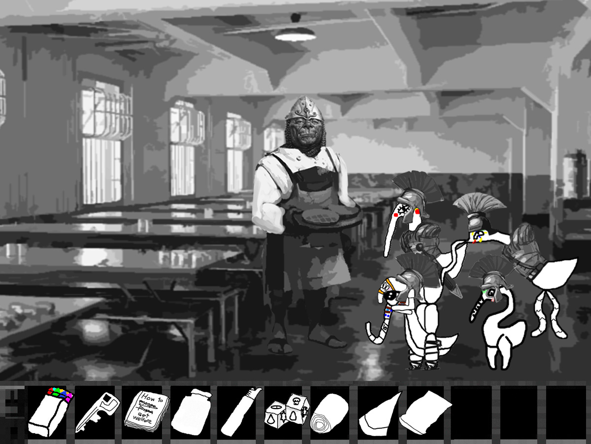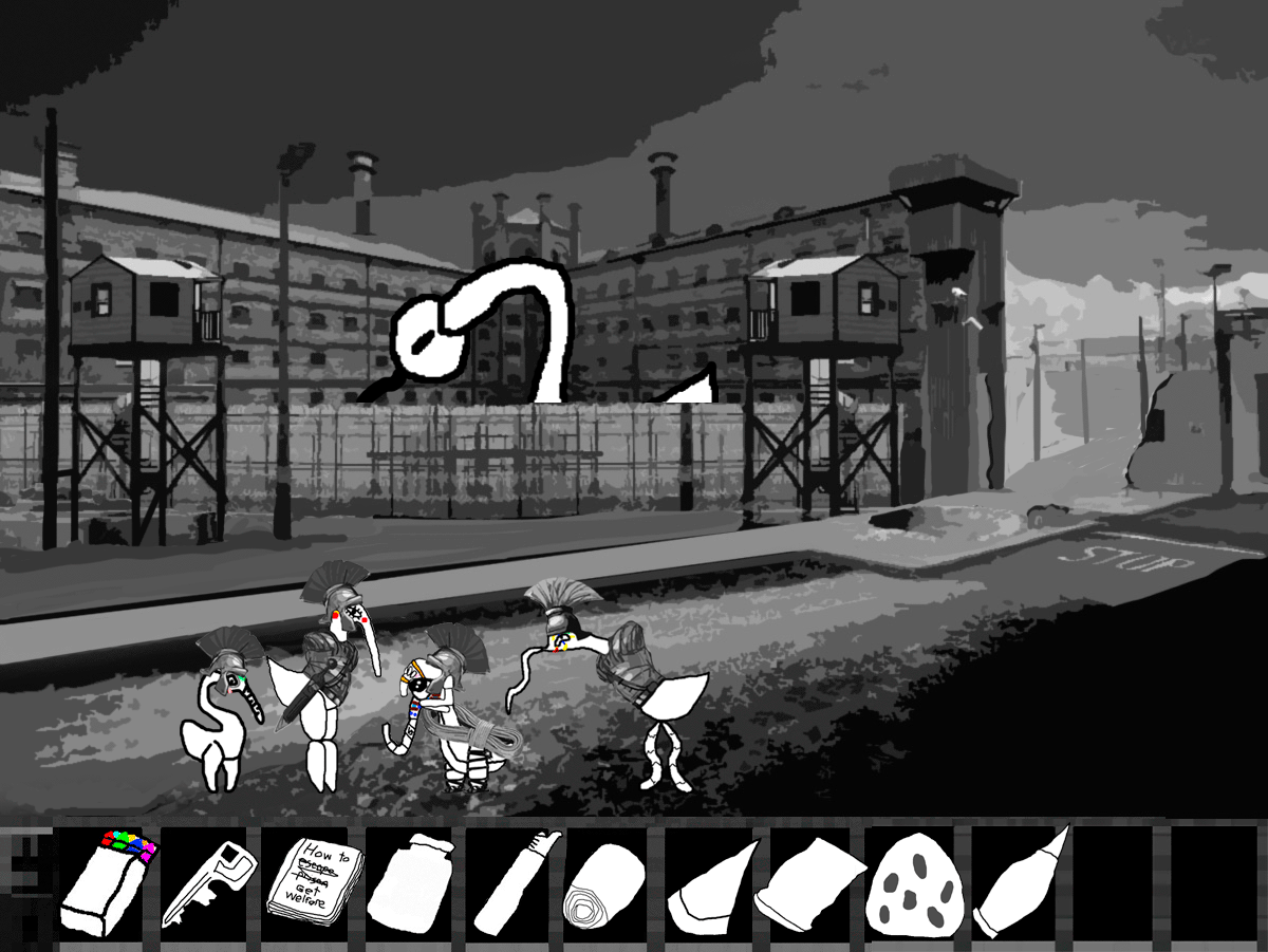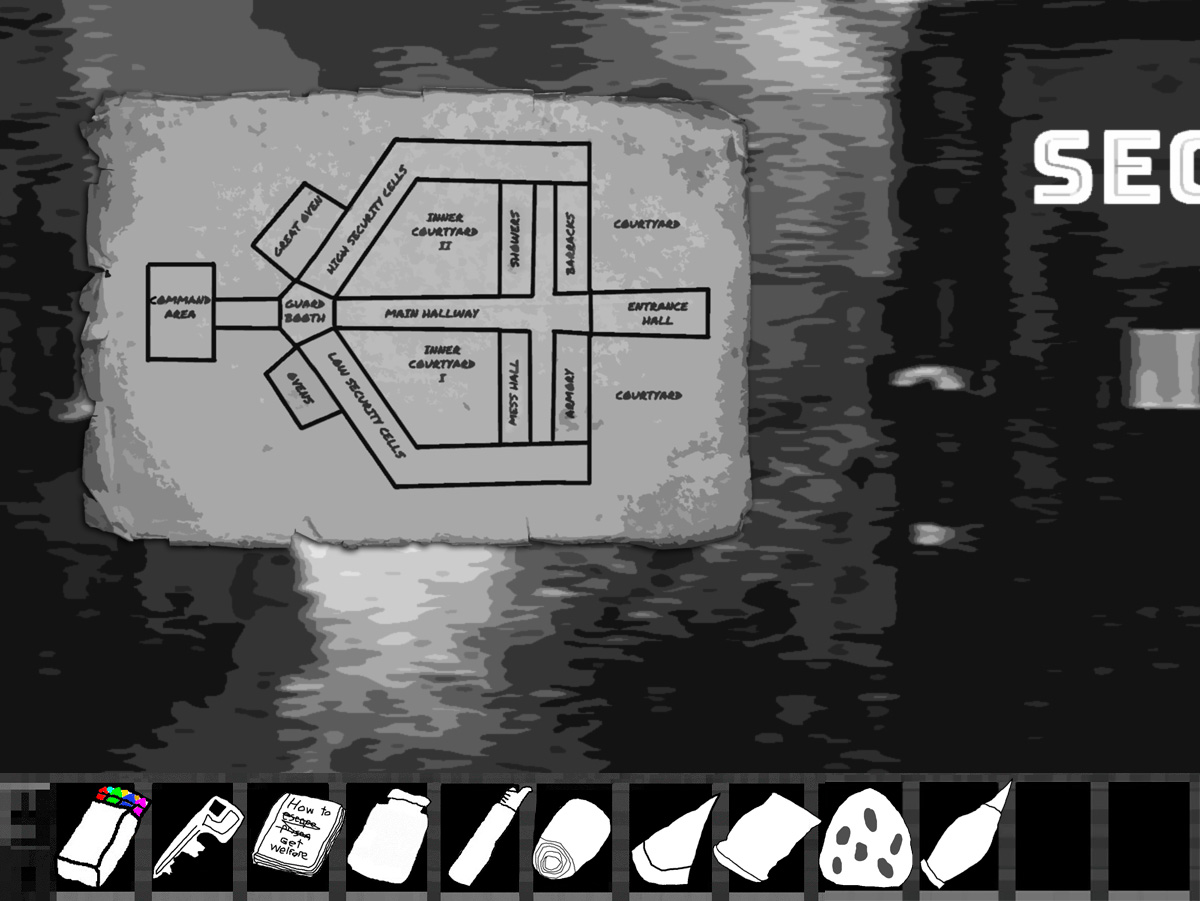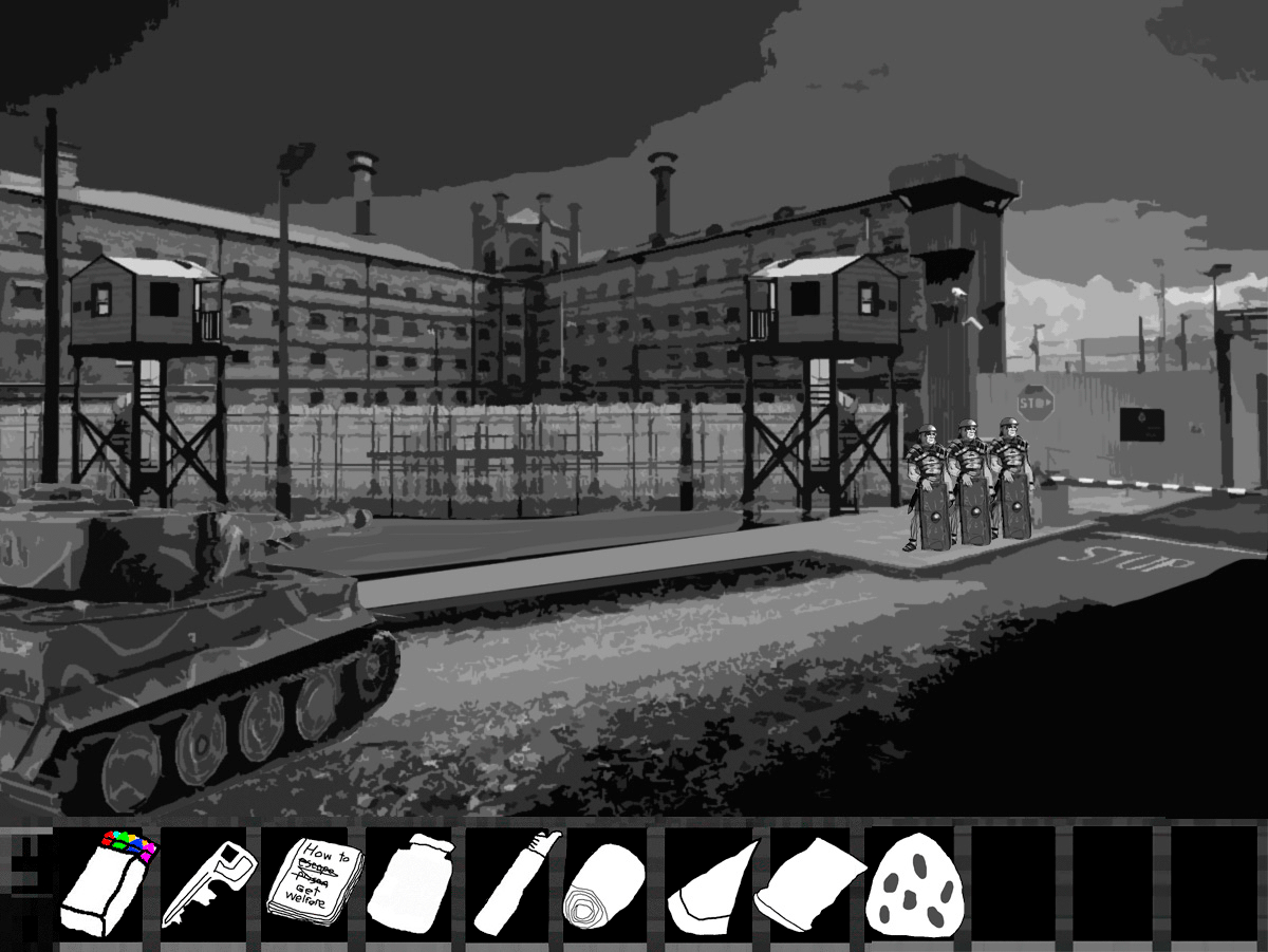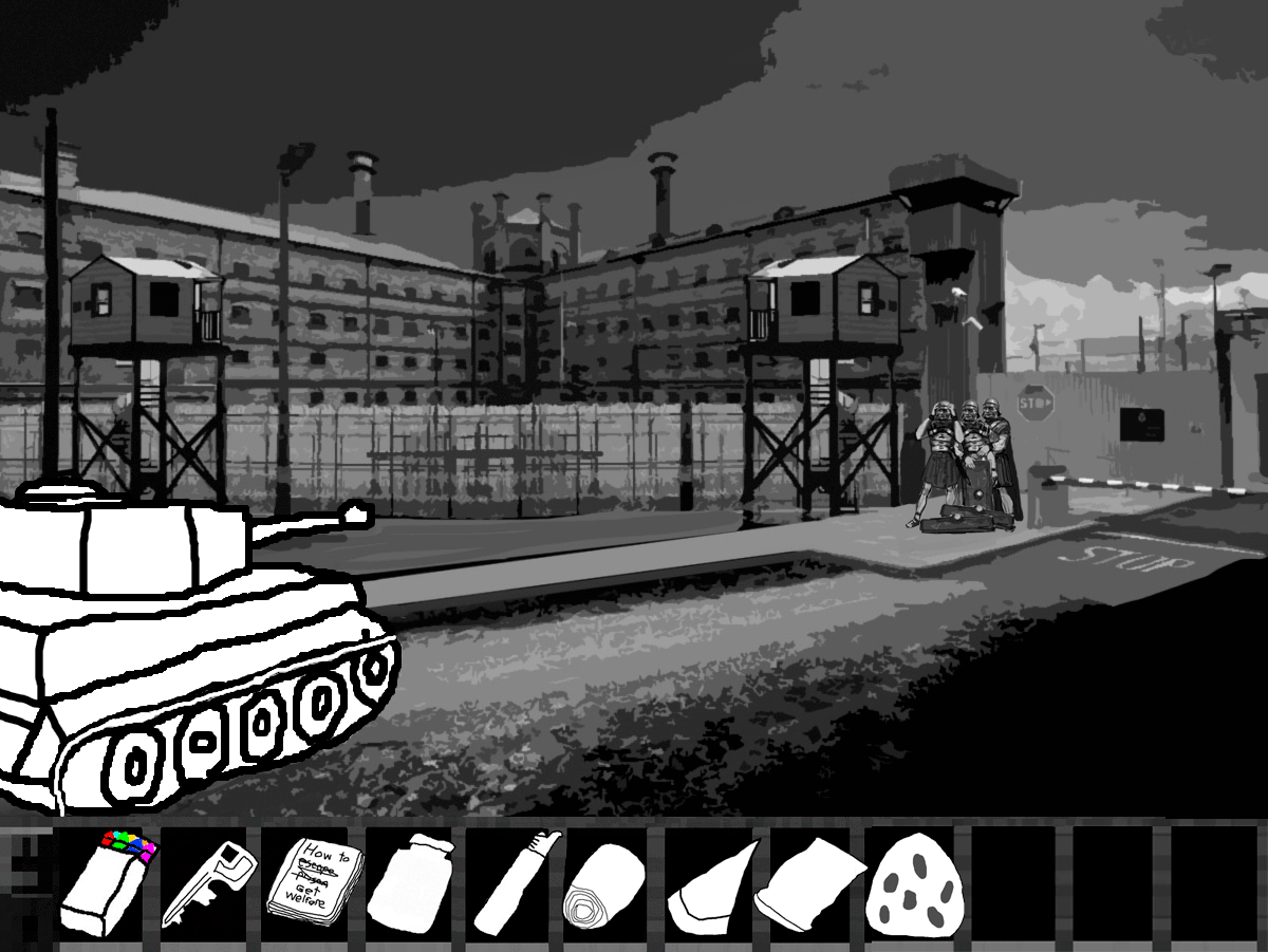 "You're looking to escape aren't you? Well you're out of luck, this facility is deep into the hills, we cleared all the trees to make sure we could see any escapees, planted a few land mines just to make sure and there are regular patrols up and down the road, in fact we should be getting reinforcements soon."