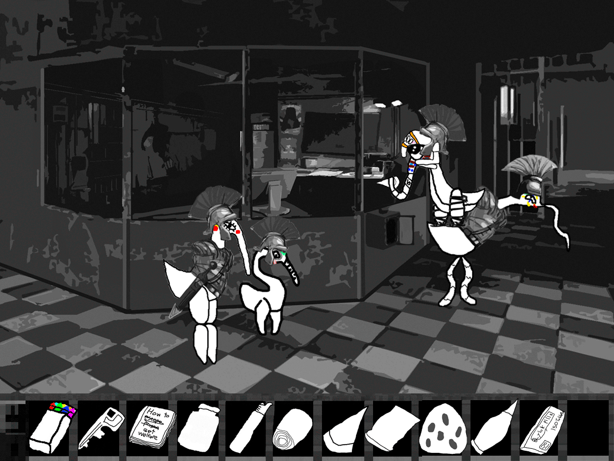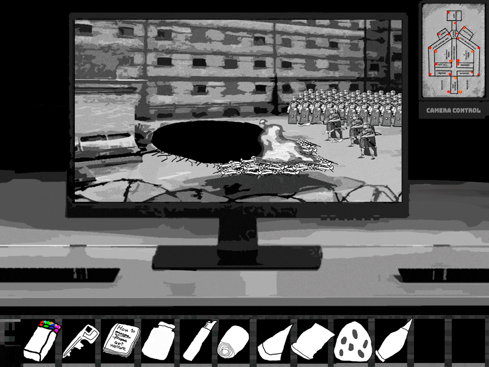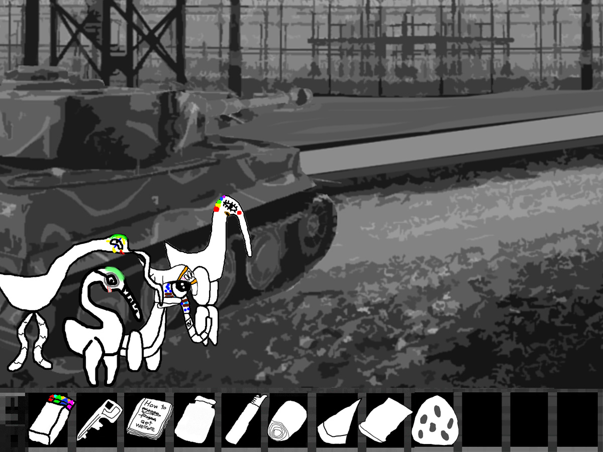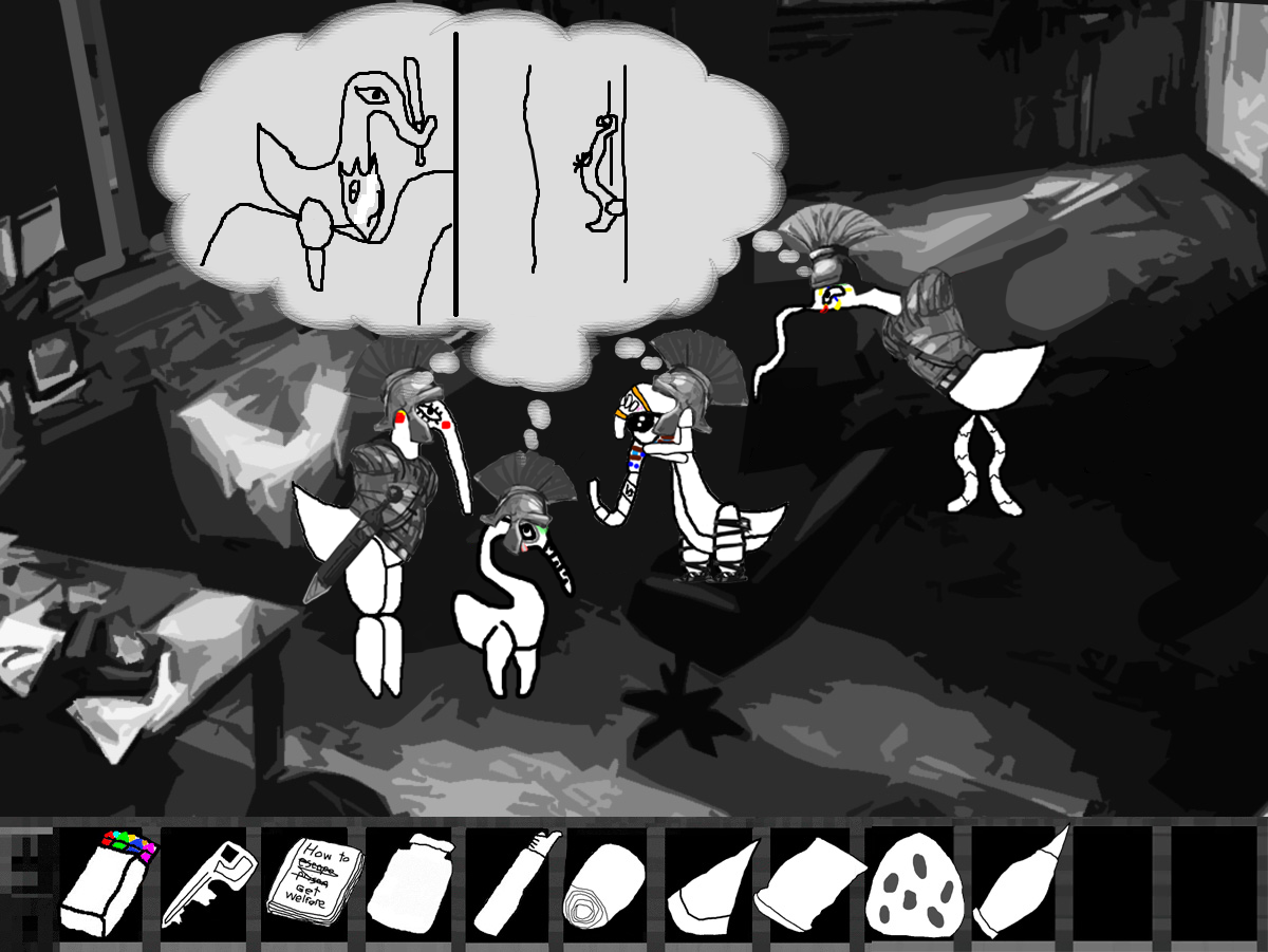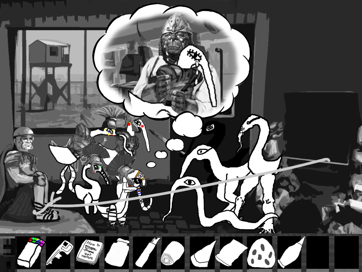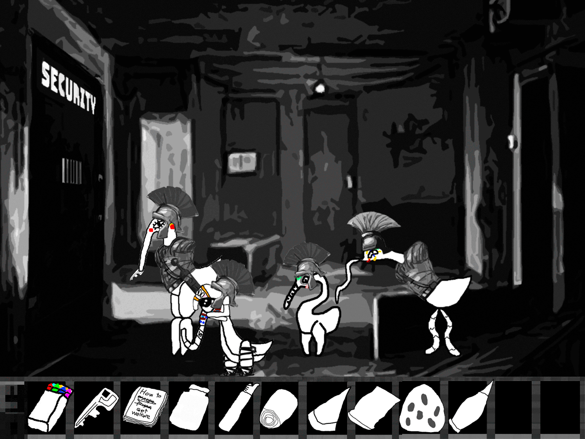 "You're looking to escape aren't you? Well you're out of luck, this facility is deep into the hills, we cleared all the trees to make sure we could see any escapees, planted a few land mines just to make sure and there are regular patrols up and down the road, in fact we should be getting reinforcements soon."