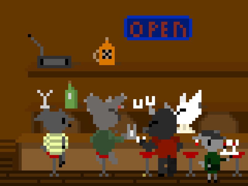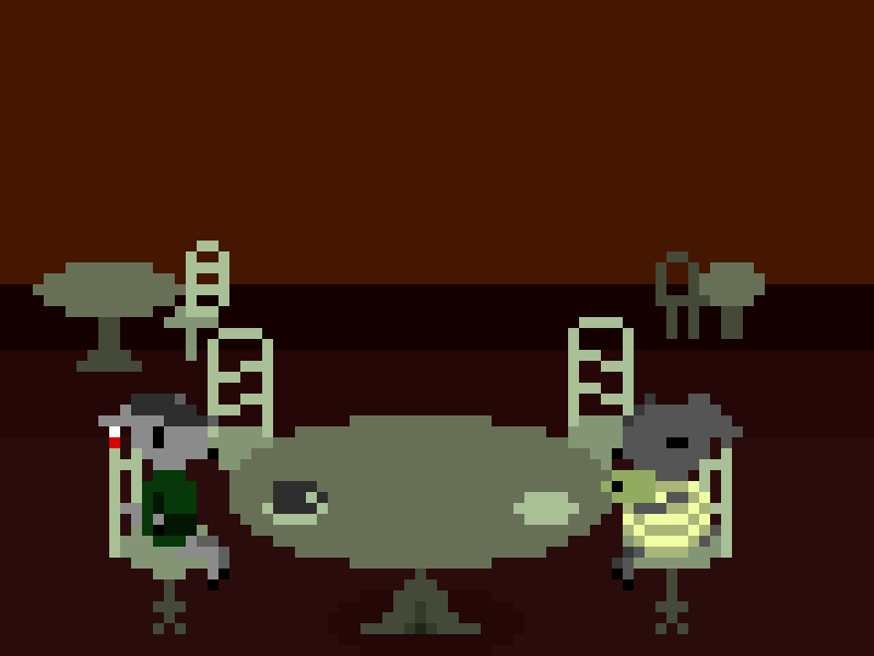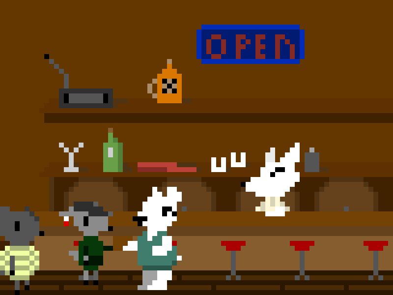 I go over by the cafe real quick and get five dollars worth the quarters. That'll give us each five plays on the machine. Then Pepper and I coin up for our first round. A sound effect of a roaring dragon plays and the game begins.