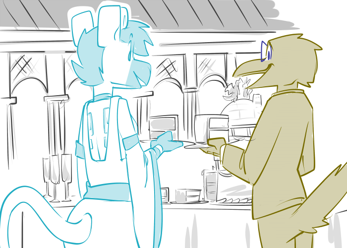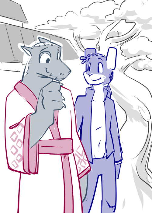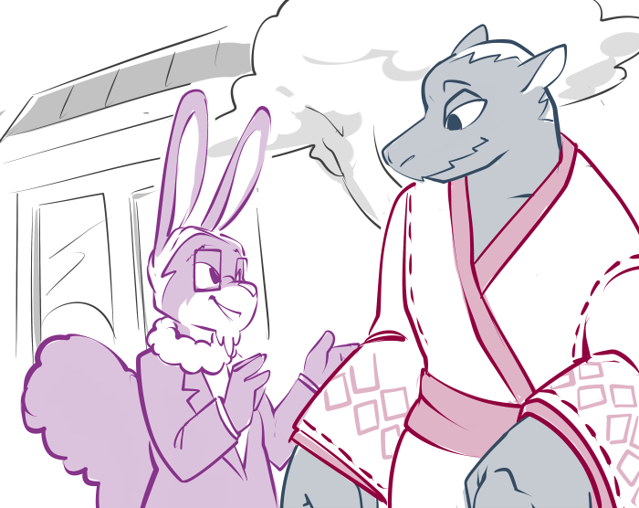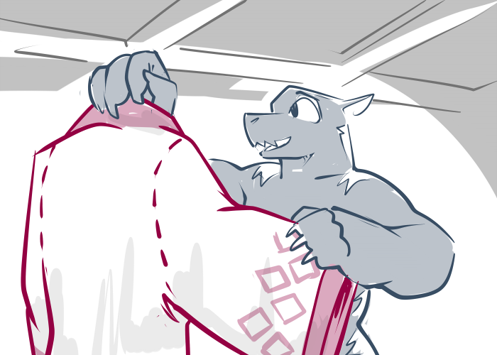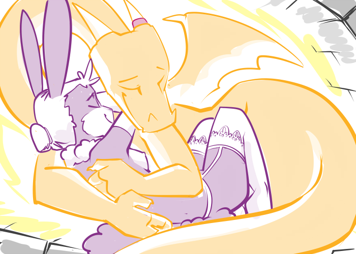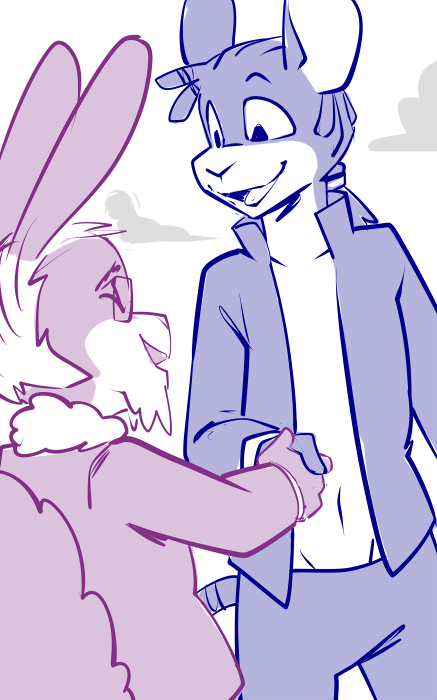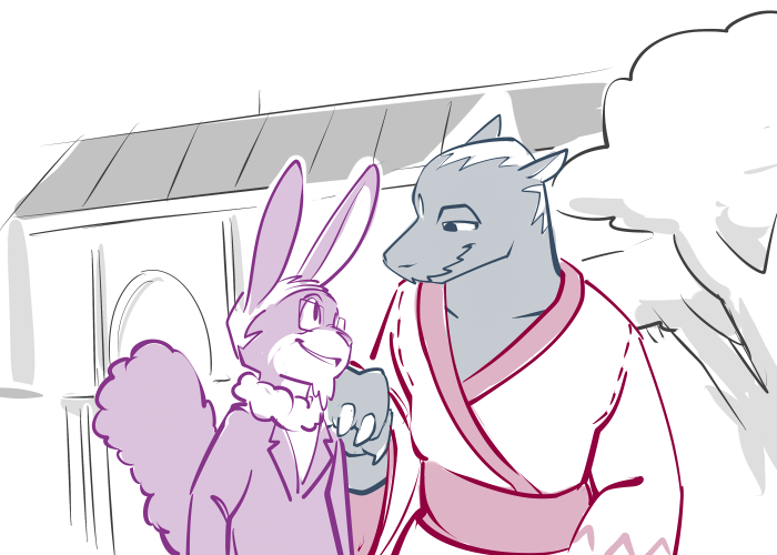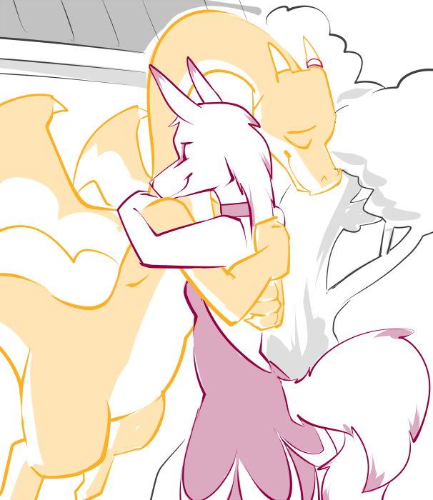 Casey reaches out and takes his hand, bringing it to her side. The calloused palm runs carefully down her flank, feeling the soft, unfamiliar curves. An idle thumb caresses her breast, feeling the weight and warmth. His claws trace the place where, months ago, he caught her out of the air.