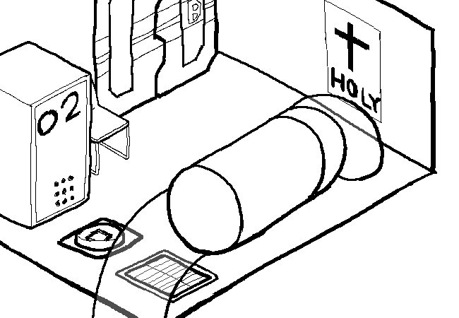 Pipe transit. Indicates "HOLY". Pneumatic pipe transit is tremendously cheap and tremendously dangerous, and you just got done with an actual, factual spacewalk. You don't feel comfortable going to a church for some reason you can't entirely articulate. Well, whatever, it'll be gone soon anyway.