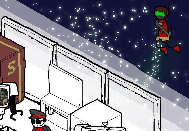 You are :RedDwarf:. You are leader of the notoriously nuclear gang of fixers and criminals known as the Redshift Operators. The Company recently established yet another hideously unsafe space station to exploit this solar system's resources. A long campaign of violent subversion has taken you through the arrivals airlock in search of explosively radiological solutions to economic problems.