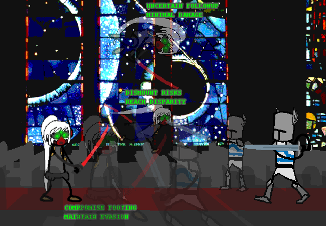 This first large burst of posts will be transcribing the already extant art (and commands) onto the board. After the extant art has been posted, commands from the board will be forwarded to the artist for consideration, and future art (and successful commands) will be posted here by me. Commands posted before this period are invalid. Consider this a cutscene until I make clear otherwise.