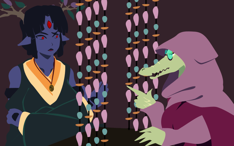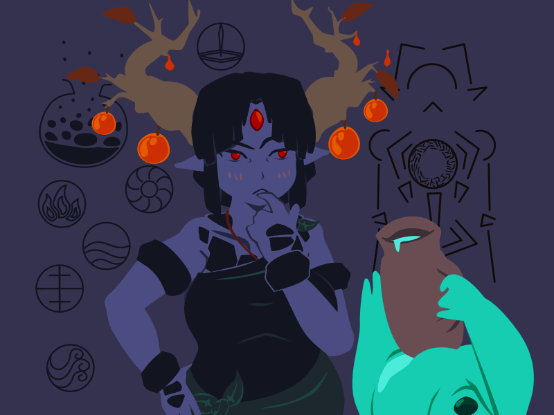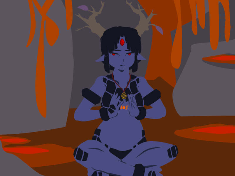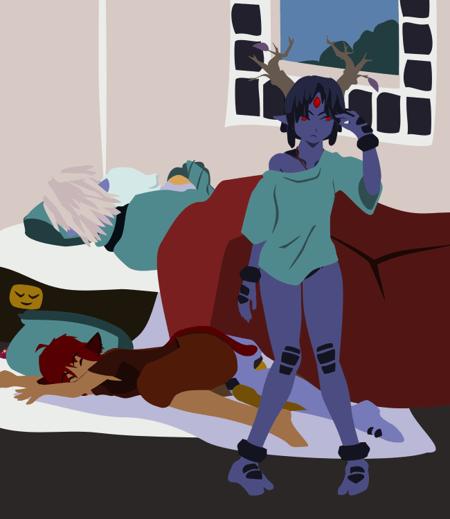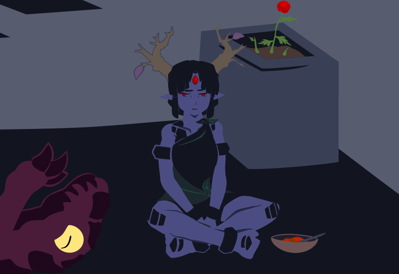 Moriko had some stigma against her due to her demonic blood in her homeland. However, it's also what gives her an affinity for shaodw and the earth pulse that forms the foundation of her family's fighting skills. Something that happened during the night hag dream intensified Moriko's rejection of her demonic blood, creating a fissure in her spirit. She has slowly been getting weaker since then, and there was growing evidence it had somehow been split off from her as a shadow creature.