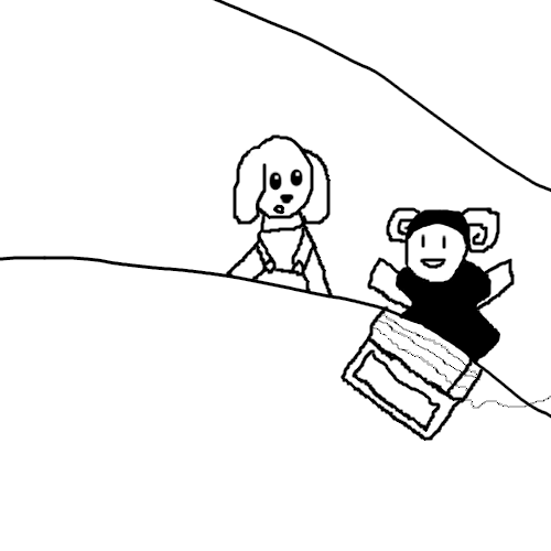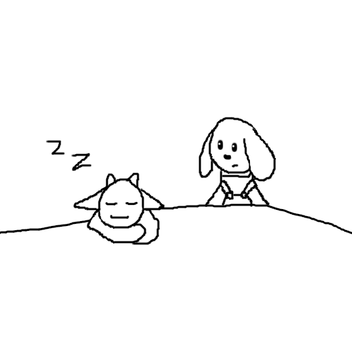 Cookie looks at the sleeping goat. He just looks so peaceful... but he's going to have to wake up so he doesn't miss club activities.
