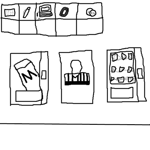 She finds the ice machine, which is next to a drink machine and snack machine. If she looks closer, she can see one of the snacks is loose and thiiiiiiiiis close to falling down.