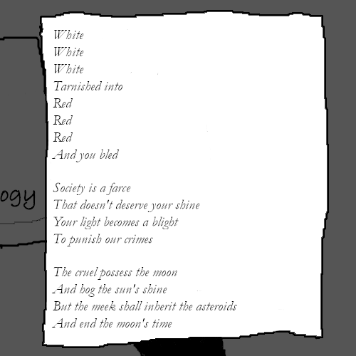 "Poe is a genius, hands down." Muffy agrees. "I can understand if horror isn't everyone's thing though. It's just... I relate better with the darker stuff, you know? I'm actually taking a Russian Science Fiction class this year."