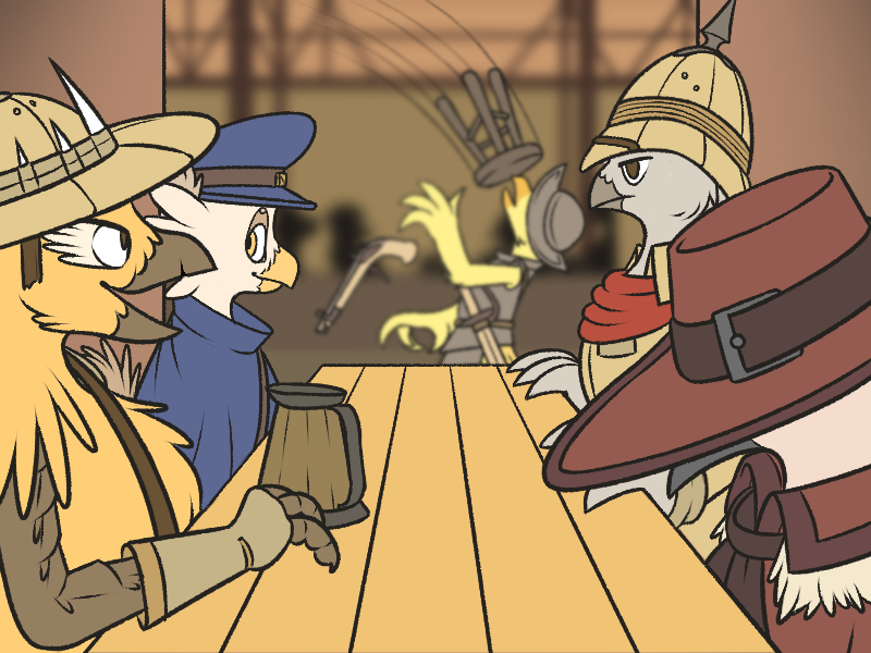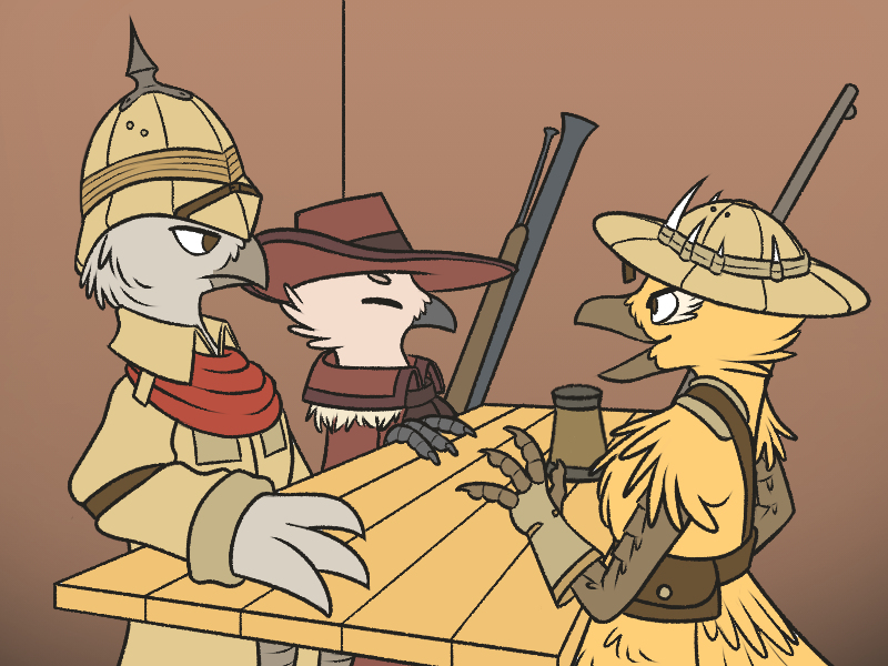 I can't tell if it's a she or a he, but that's because I'm not an ave. aves have the same issue with chimeras. I don't know if Trasks would want to sit around while I'd deliver stuff, but I think there's a good chance I'll run into these hunters again sooner or later.