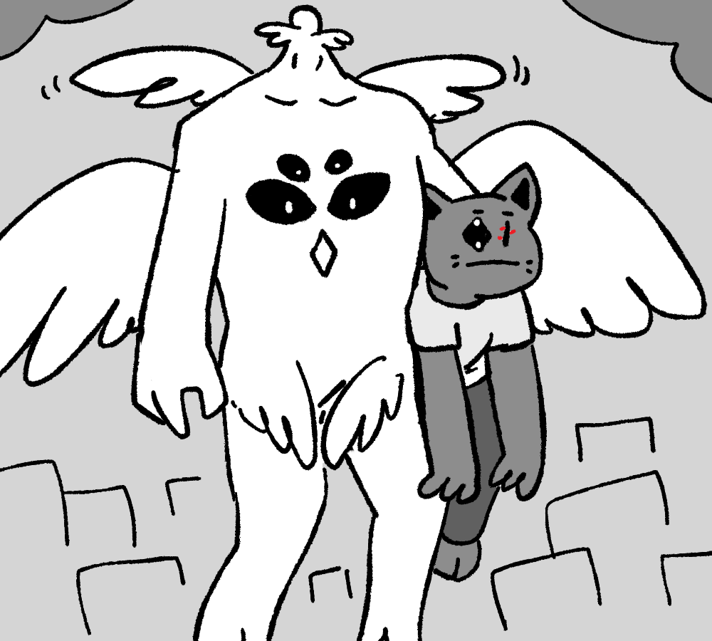 Okay, next question, ask what kind of "leads" DH is looking into. As in, what specific information is valuable to the Angels and their God? I wonder if it's that they're trying to solve the limited-power thing, so their God doesn't have to cull the animal population. That's basically what Jadis was trying to do, wasn't it? Except, she couldn't get it to work and wound up cheating by stealing a soul. Also I guess Duck got highly rewarded for discovering the soul-share string, and was then sent to... kill Jadis? I wonder why? Wouldn't that be counter-productive? Maybe it was to steal her soul and thus the knowledge involved in producing the string? That's probably it.