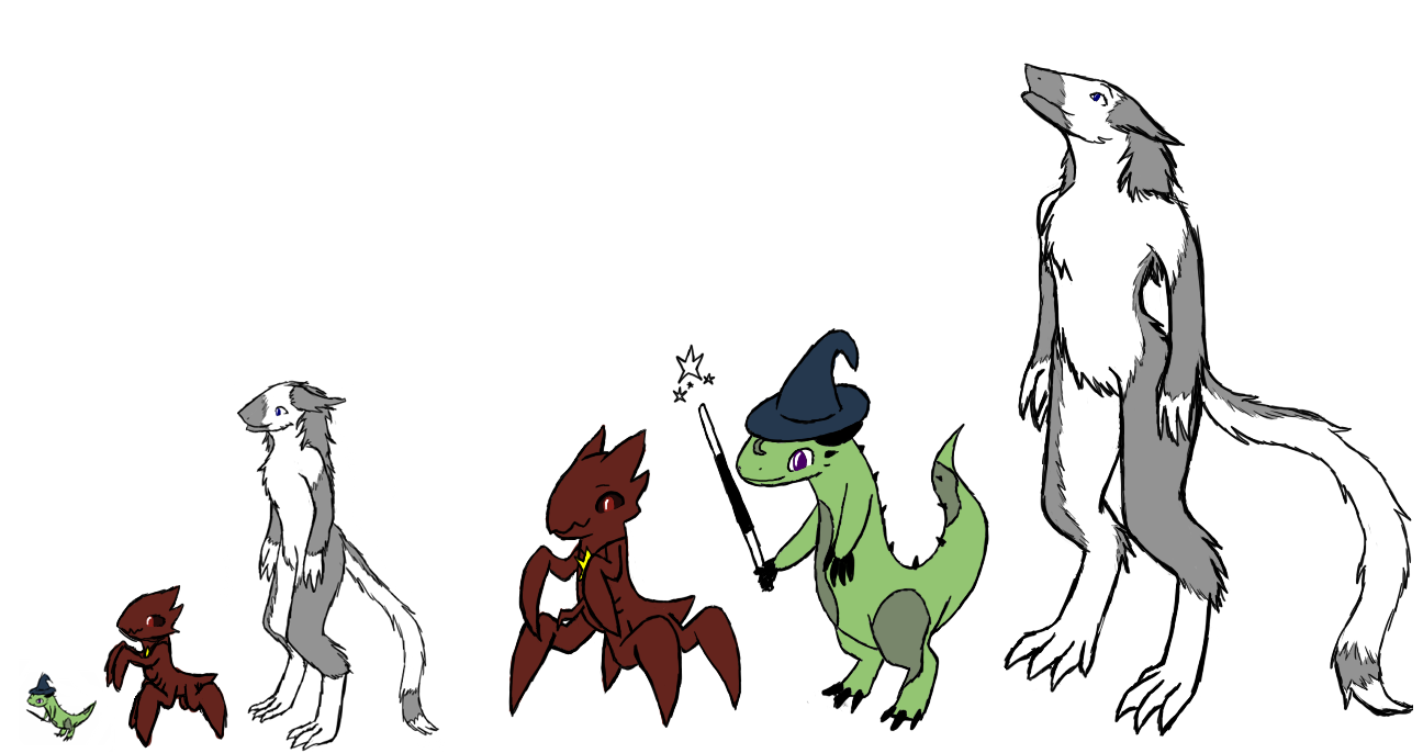 Because we couldn't decide who's discussion thread to put this in. This is a short quest written by Typo, drawn by me. The image on the left shows the concept art of the main cast, as well as a size comparison. The slissa is very tiny. (Alternate title: Hugs are Magic)