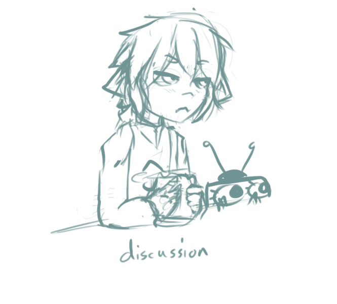 Heyo. I was so far feeling against making a Discussion Thread because, seriously, there isn' much to discuss. Quest rolls at a slow pace, and in part its about discovering the wordl from Player's perspective -- or at least, from the perspective of a glass ball being carried by him. Yet, there IS information not worth of cluttering the thread with. Maybe I should put it in the wiki; maybe someday I will. But so far, the thread format has served me well, so I shall abuse it some more. Since I dont actually have any info handy to deliver, have some Miss K concept art. Just remember; any questions you have, try asking Player himself. He'll answer to the best of his abilities :)