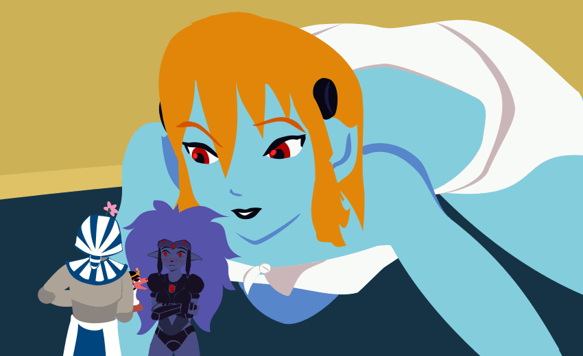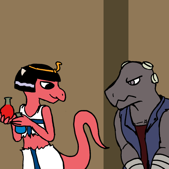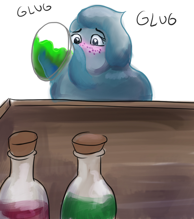 Sami: Want to drink potions until you're a woman again? I told you, I'll be OK with whatever your physical form.