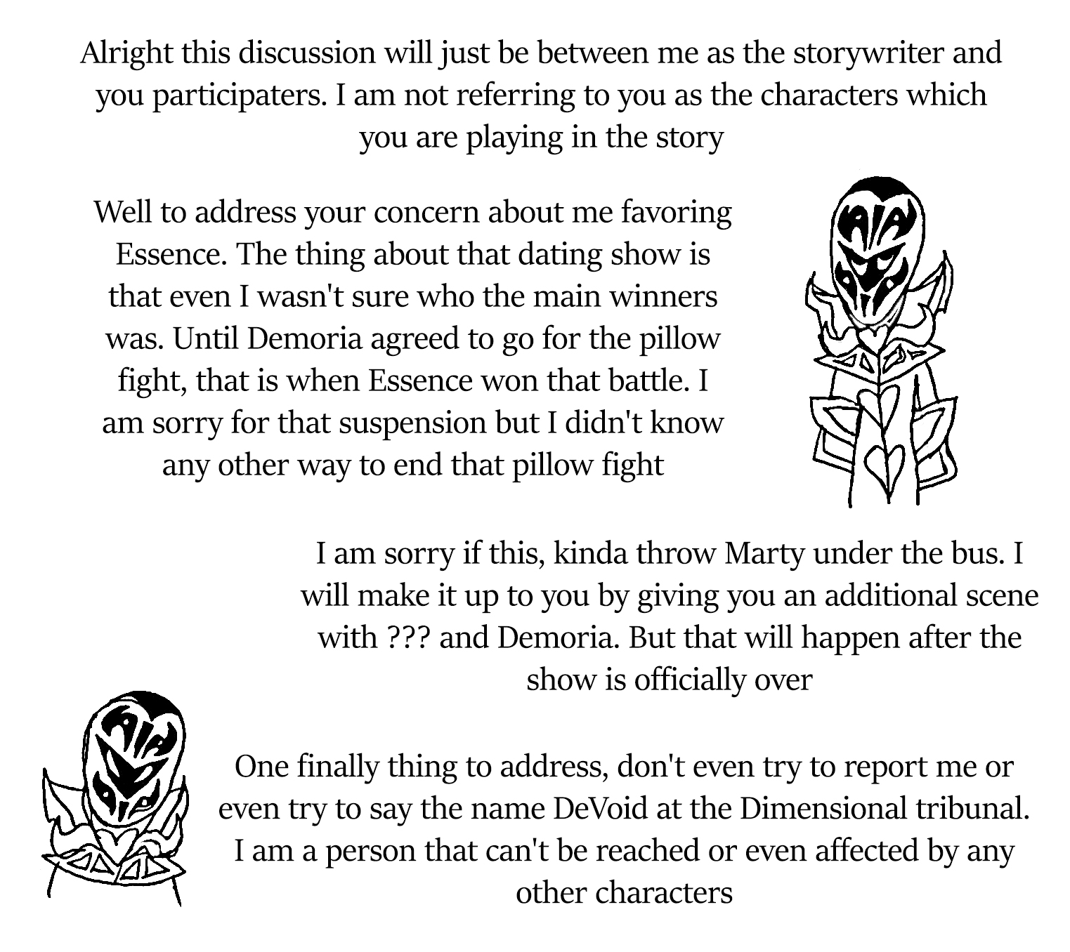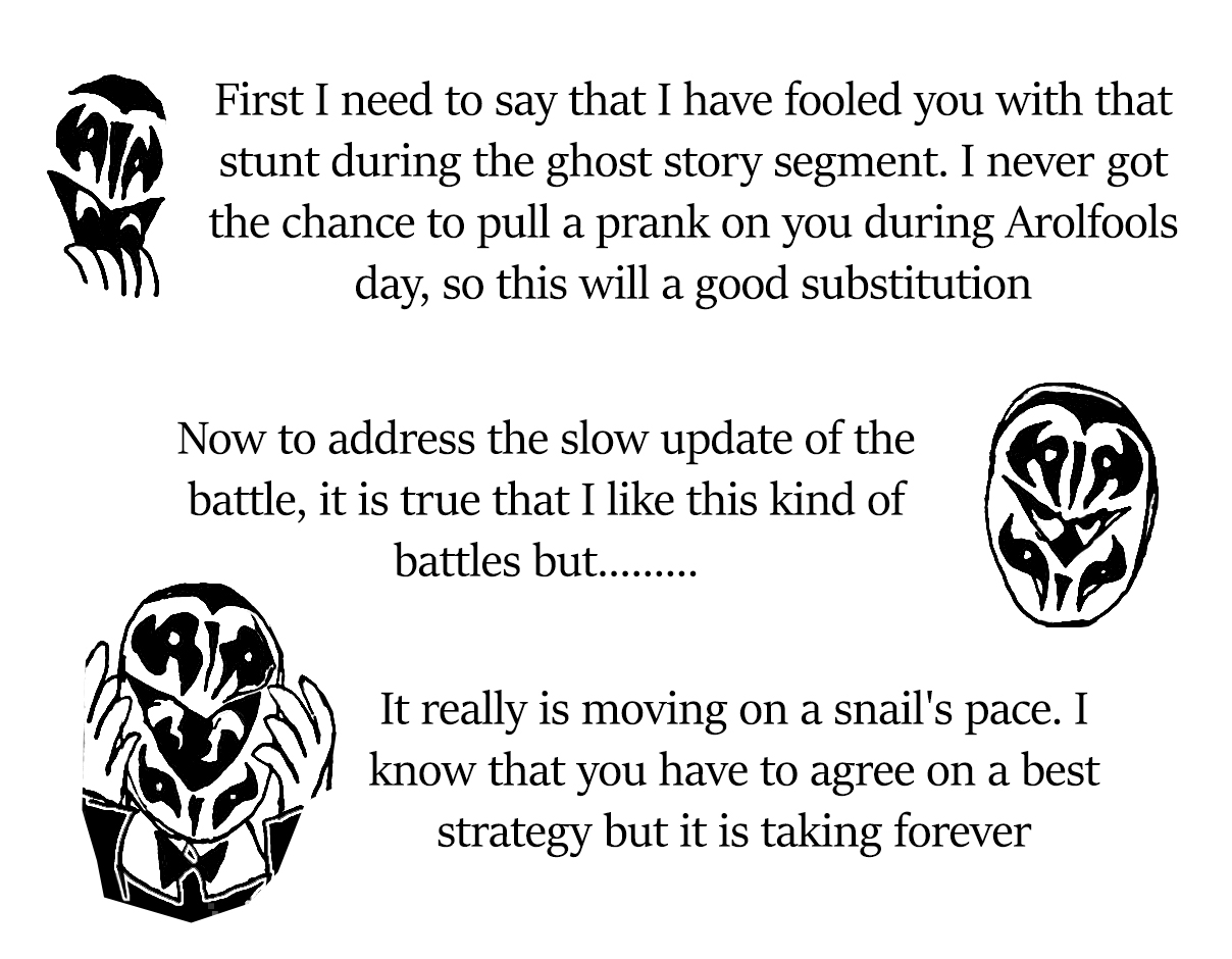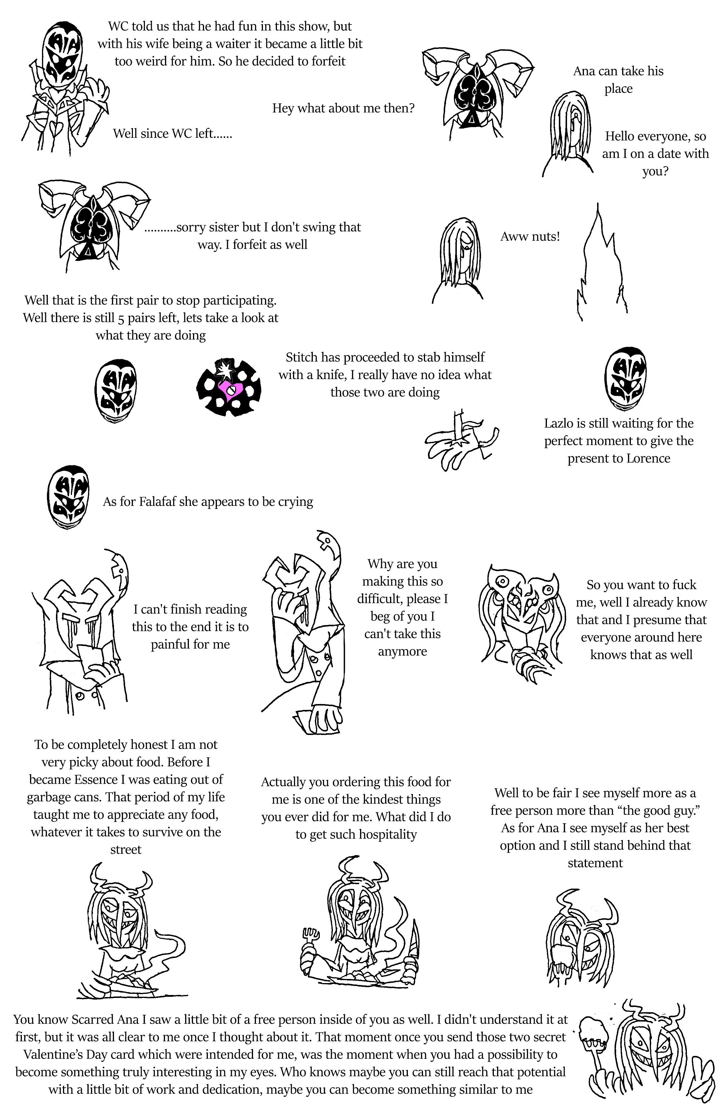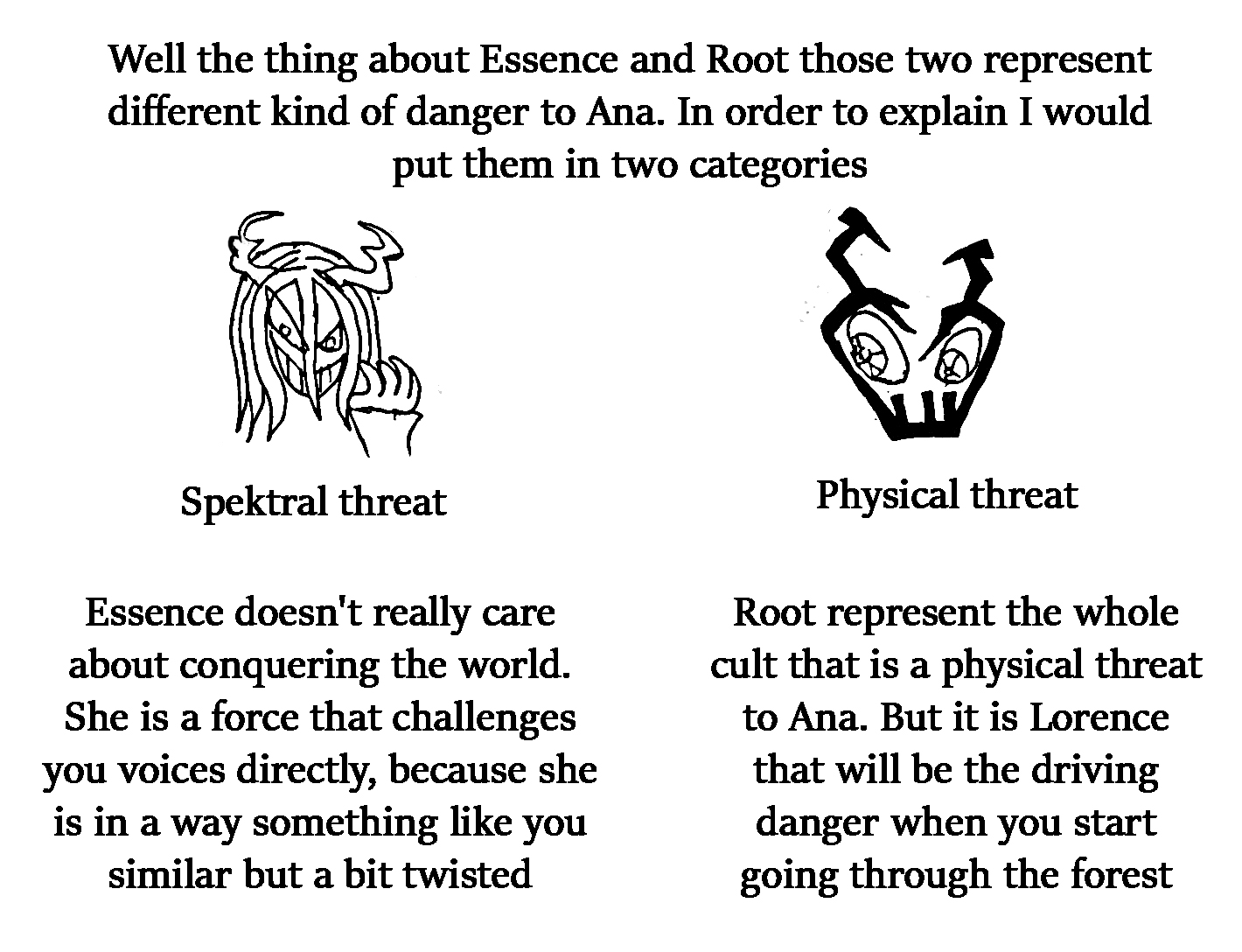 Meanwhile all of this going on Ana is talking with the young offspring of Mother Gaia and Absolution, who is promptly named Absolution Jr, and from this point on goes by AJ. AJ shows her that now with him acting as her right eye, Ana now has access to basic magic abilities. Ana is able to summon fireball and shoot it like a bullet from her finger. However this is the extent of her power so far, and it's all AJ can give her at the moment as WC is actually hindering her and AJ's ability to evolve and grow further at the moment, they will still grow however but at a slower rate. When suddenly, who should appear by Andrew Goodwill again. He reveals that Clara suddenly attacking was against his order and that Root was the one who ordered the death of Absolution due to receiving knowledge of another universe that had a far greater impact with magic and that he needed to die in order stop such a cataclysmic future. As stated this was against Andrew's orders and so he feels Root needs to be punished for his insubordination. He also plays the blame game and tries to convince Ana that her voices are actually a hinderance to her but it doesn't really work, although he does give some convincing arguments. In response Andrew gives Ana a sudden nightmare of her being attacked by a singing Root and immediately tries to blame it on the newest arrival to this meeting.