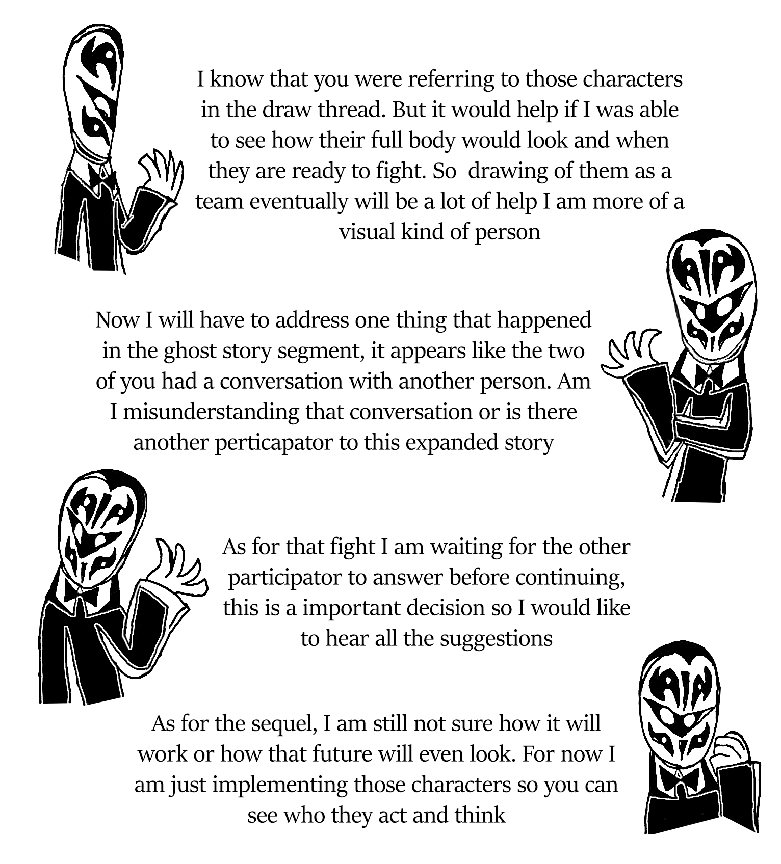 Both Ana and Dreamwalker are horrified, Dreamwalker confesses he looked into the mind of Stitch while they were at it and there was just, nothing cohesive, like voices trying to call out from a black hole and even to a god like him it was horrifying. Ana wants to take a minute to think everything over but isn't given the chance as she looks out and see a woman dressed as plague doctor getting beaten up by three people in masks. Ana goes out to at least check it out and listen in on what's going on. As it turns out the plague doctor isn't one of the Acolytes of Ash but is instead someone who gives out masks to people so they can live in the fog. The people beating her are panicking and scared of what's going on and continue beating her. Scarred convinces Fortune and Ana that they need to help and Ana leaps out gun ready and one of the others also pulls out a gun and there's a stand off moment, Ana does the whole "Look behind you!" trick only for it not to be a trick. As it turns out this plague doctor named Epidemic Gretel also has a bodyguard, and it's none other than Bleeding Jimmy. Jimmy jumps down from roof he was standing on top of and attack with scythe. Ana like a champ calls out for Jimmy to stop.