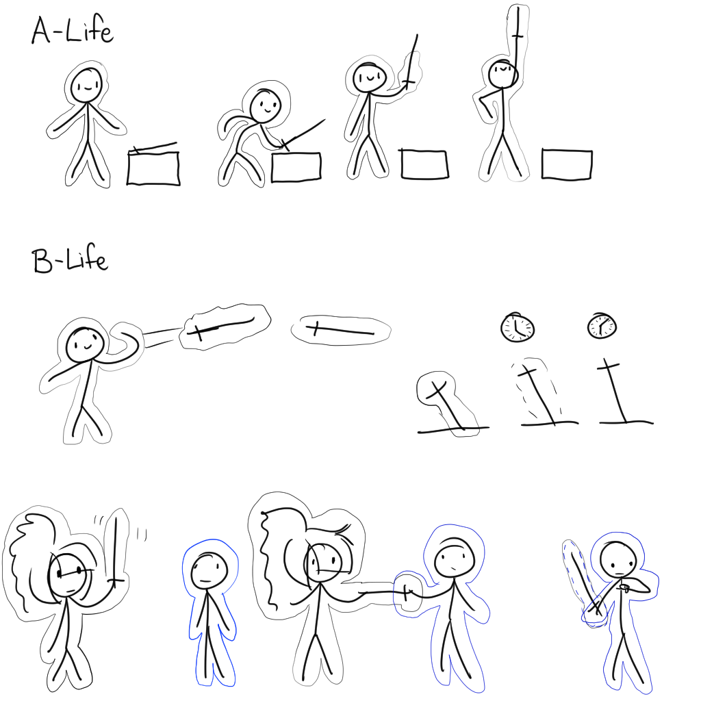 Dungeons work much the same way as they do in an MMO with some of them just being locations that people mark on maps that are usually tunnels through the ground that monsters have taken up residency in, and others being little pocket dimensions where time progresses differently like a little Narnia. Stuff respawns in the second kind and a lot of the natural resources that the world has to work with comes from them. "Instanced Dungeons" like the second sort are either way more forgiving than the tunnels or far less forgiving depending on how regulated they are. Most of the low level dungeons are regulated so hard that if you die in them you instantly wake up outside the dungeon with some of your money missing that goes to the upkeep of the domain. More difficult dungeons generally don't or can't be
