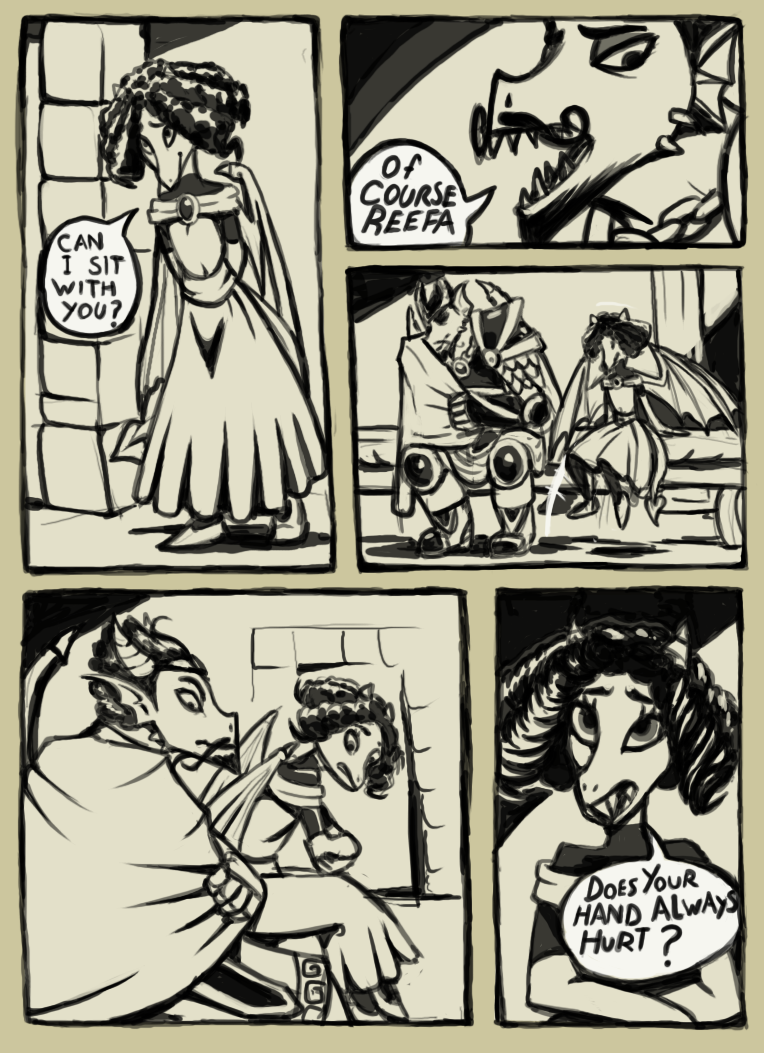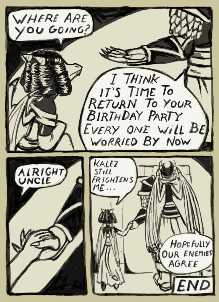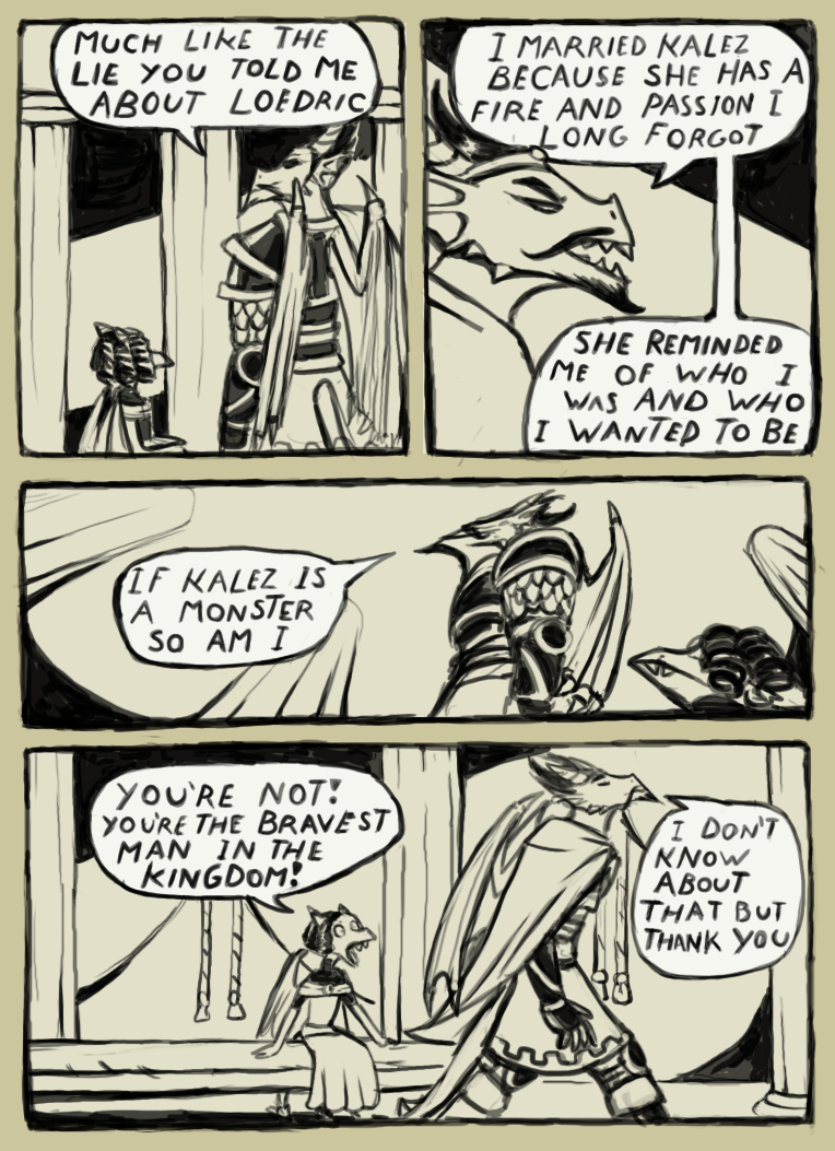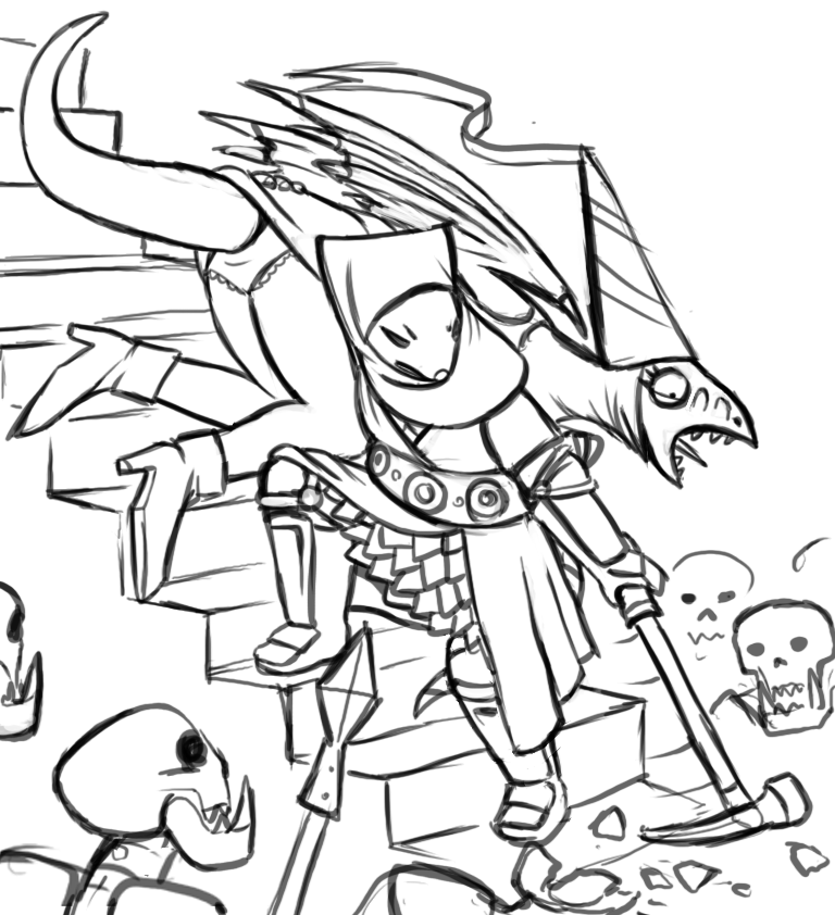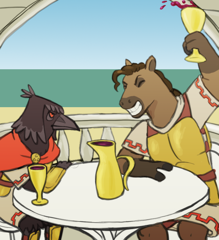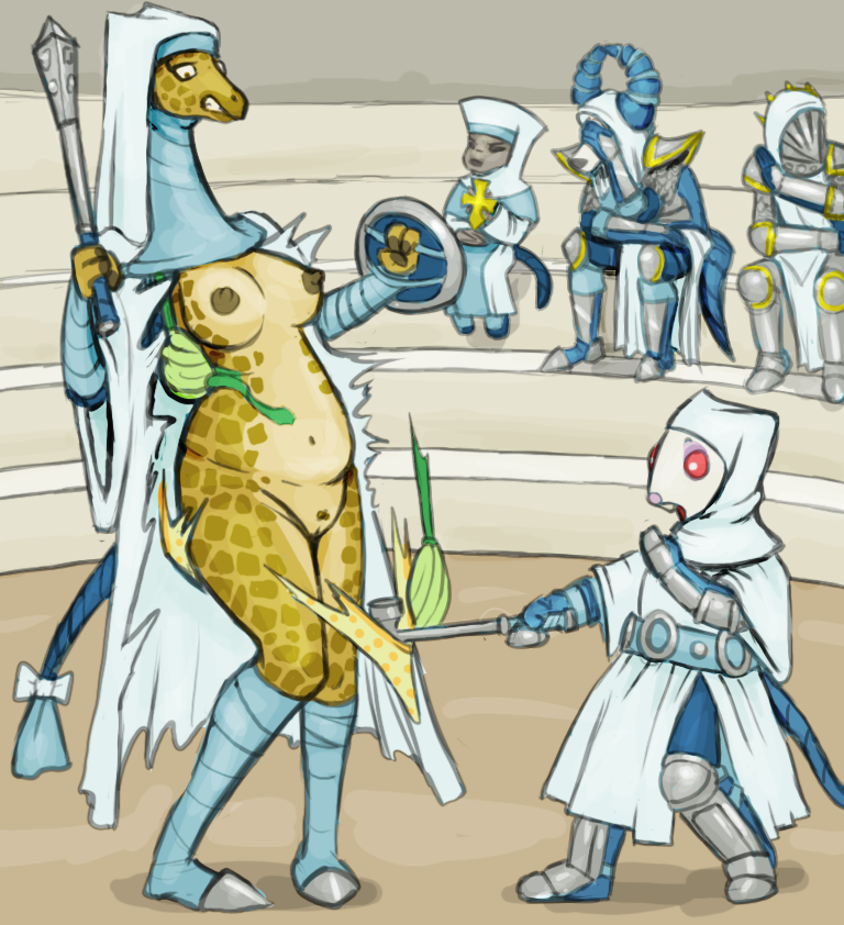 King of Pentacles I think has a better chance. It leans closest to being a simple quest by the above categories but pushes a bit beyond that by the quantity of the characters to control and the "stats" and abilities being hidden. If it were to be theoretically redone I would start with a simpler and faster intro encounter to give a chance for the mechanics to be explored/explained more quickly (for example, instead of facing the heroes right away maybe we start with a scene of only one or two of the tax collectors guarding their stuff in a town at night while the others are sleeping, and facing off against one or two bandits; or perhaps one or two tax collectors scouting ahead of the group along the road and fighting just one of the heroes). You could also have put in some sort of "tutorial narrator" who could comment on the fight while it was happening, like maybe the queen herself watching by magic, or some nearby wanderer, or perhaps a veteran but invalid tax collector character who can only sit and shout orders at the others, or something like that. I would also (and this could still be done) just put up a straight gamey "UI" or a stat screen shown at the start of each round, where we can see the characters' health and morale as bars as well as their condition and maybe a little list of their special qualities and their "level" to show how powerful they are.