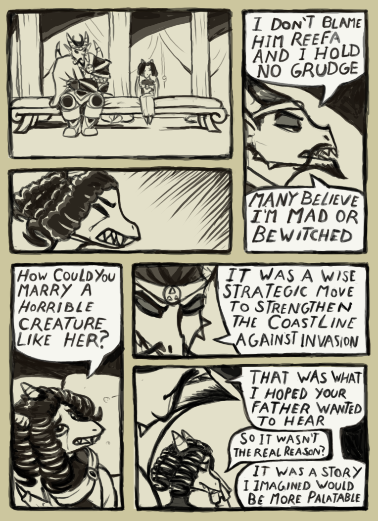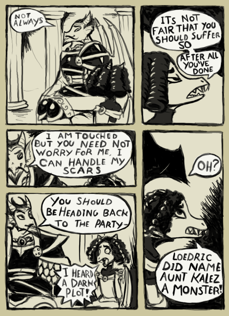 Silken Vale was a complex quest, and had the misfortune of its mechanics mostly being established in info blocks; it didn't have much of a mechanical intro or tutorial and the interaction point between the suggesters and the audience was one in which it was entirely possible for the characters to lose patience with and outright ignore the suggesters. Still, people seemed to be interested enough in the quest and the setting on its own merit to go through the info blocks, so the lack of a tutorial wasn't really so much of a problem. My ability to speculate on its failure is limited but if I had to make some untrustworthy guesses I would say the method of "control" was quite restrictive (only able to talk to one character at a time, possibility that said character wouldn't listen, possibility other characters wouldn't listen to that character on top of that) and didn't let the suggestors feel that they had much positive influence. Also the intro ended up feeling a little dull. With the top-down perspective and all the complex mechanics the quest seemed built for tactical combat but we started off just wandering around picking up all our characters and talking, which IS the natural way for a detective/investigation quest to start, don't get me wrong, but for that it needed a different presentation for those parts of the quest. It should have had shots of the environment and of the characters' body language and other atmospheric stuff to sell the mystery fantasy, the audience needed to feel the sense and desire to explore the setting and the characters and uncover the secrets that had been promised by the quest's story. The "mood" wasn't there. The top-down battlemap perspective made things seem simple and straightforward and clearly laid out and that didn't fit the premise of a fantasy murder mystery at all, really. It wasn't unsalvageable, though.