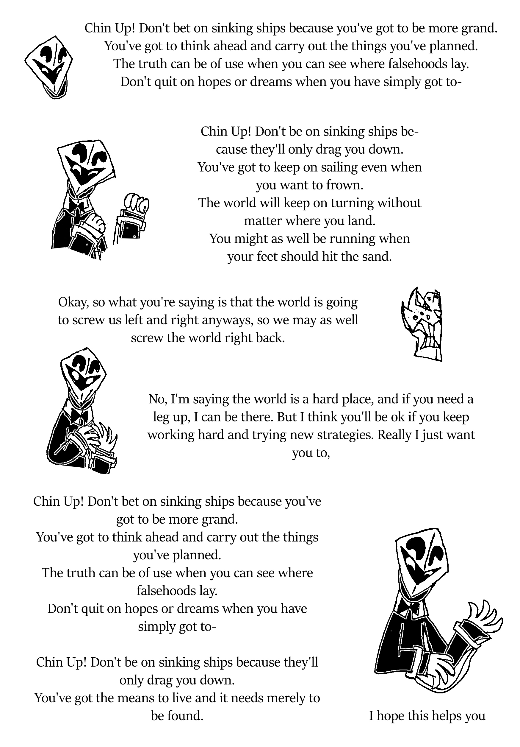thoughts:...Scarred Ana, I can roleplay as our target's other imaginary friend, but I need you to know the following
