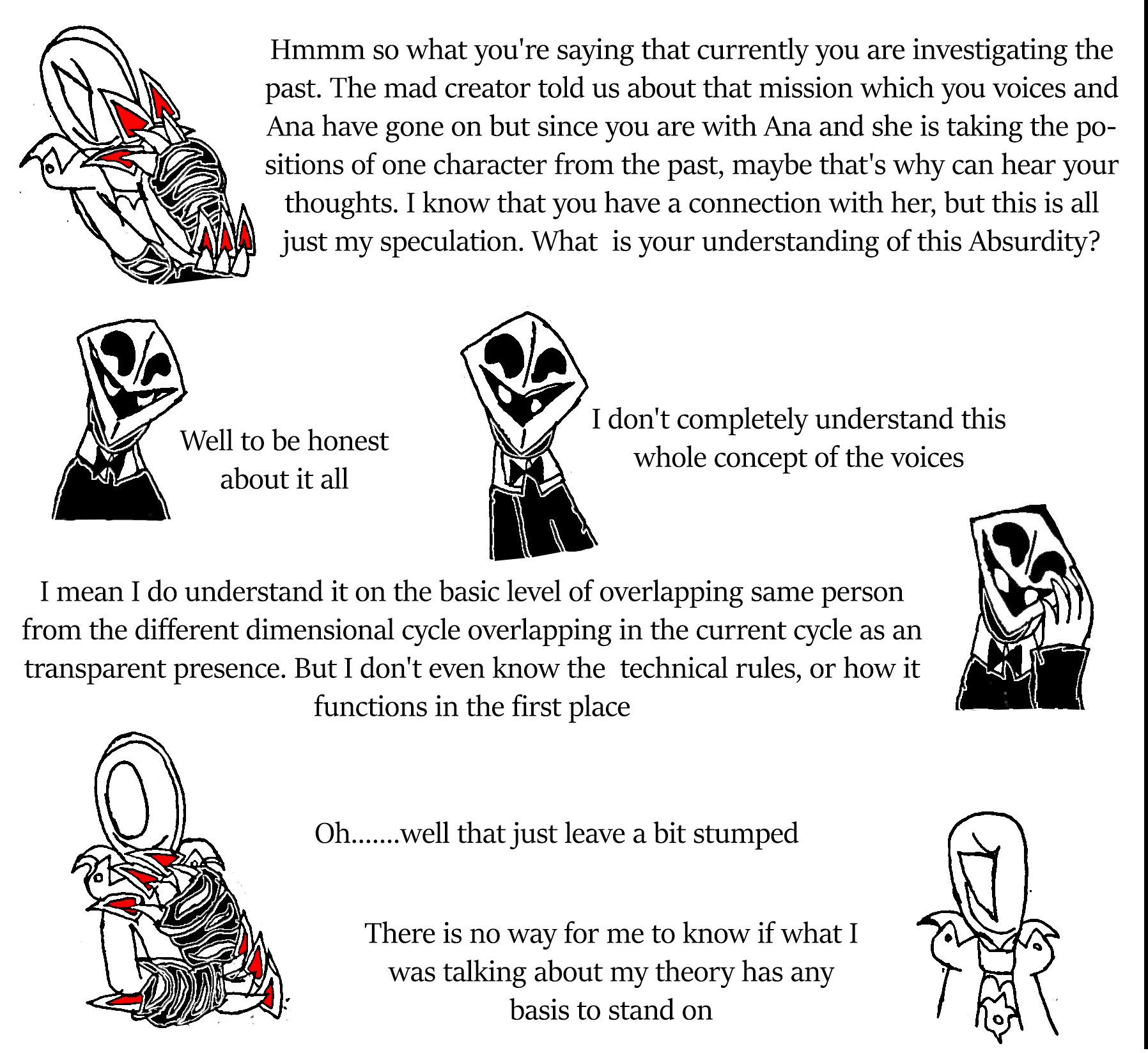 thoughts: Triumphant, speaking of totems, you should know that Robbit has given The Incubus Melkior our black totems after Essence switched our white totems when we came back from the past. I don't know how that helps out on things unless Robbit wants to tell us, but maybe that can help you in some way.