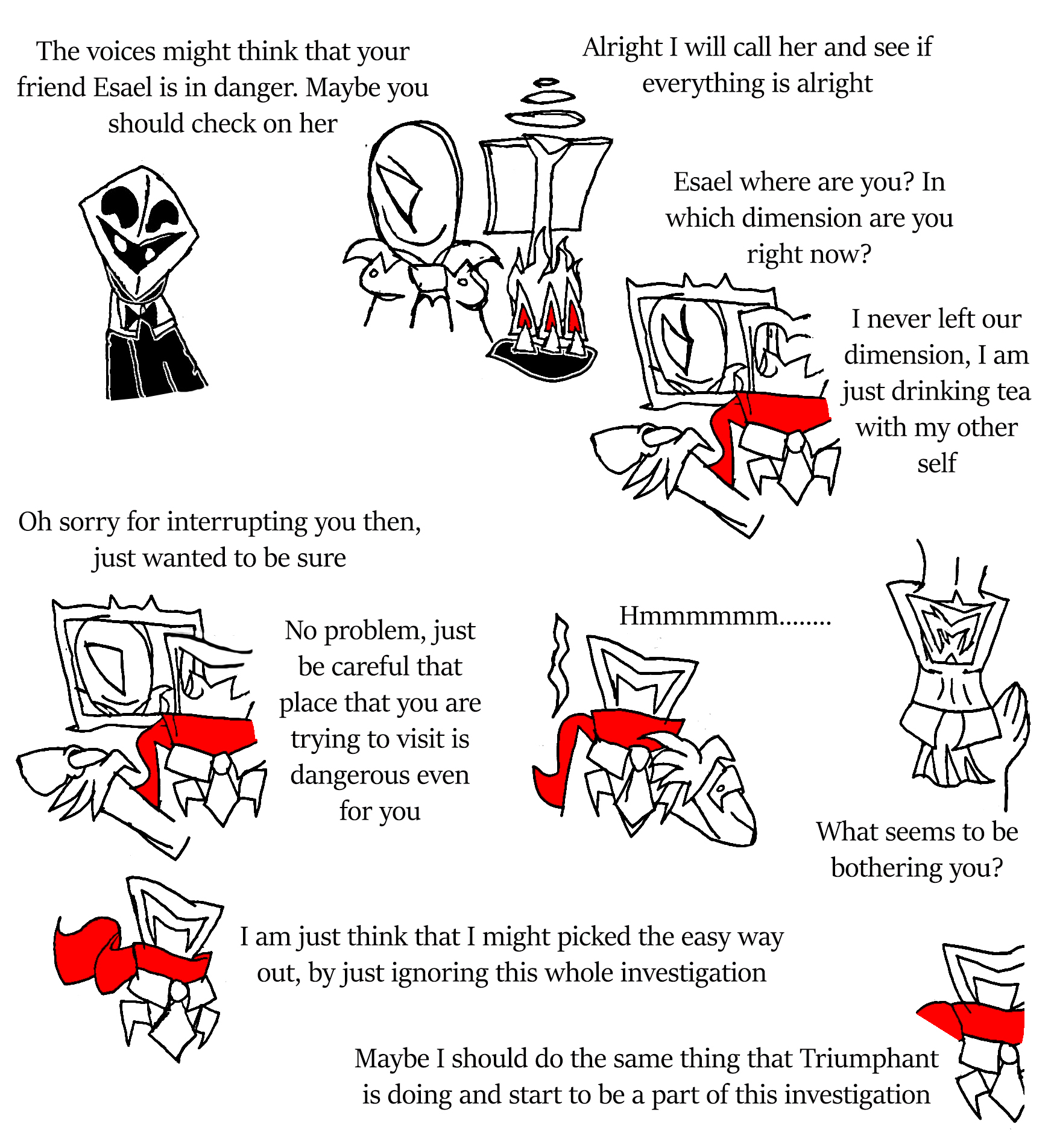 thoughts: first, Scarred, I want you to find out what the other imaginary friend is like in personality. I need to know as to play that role of the other imaginary friend properly. Perhaps start the conversation asking if she has seen them somewhere. Not now though as right now would not be a good time. Just when the opportunity arises to change the subject properly, ask our target.