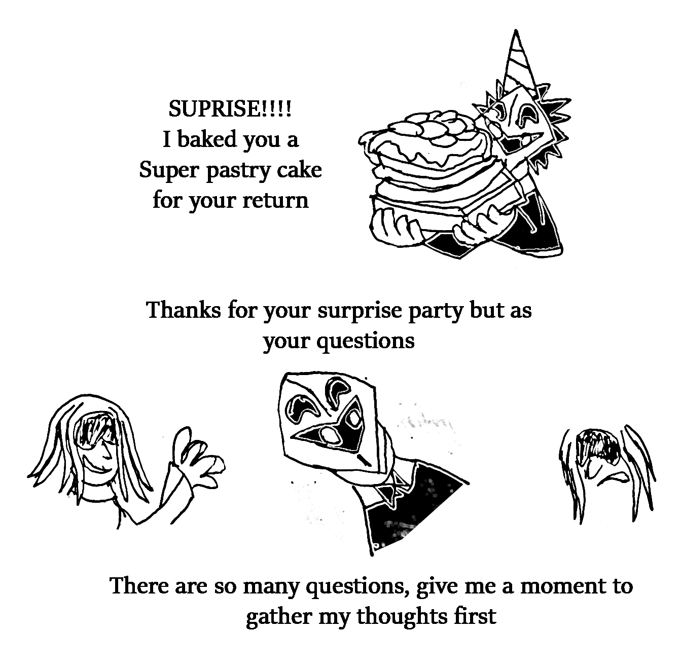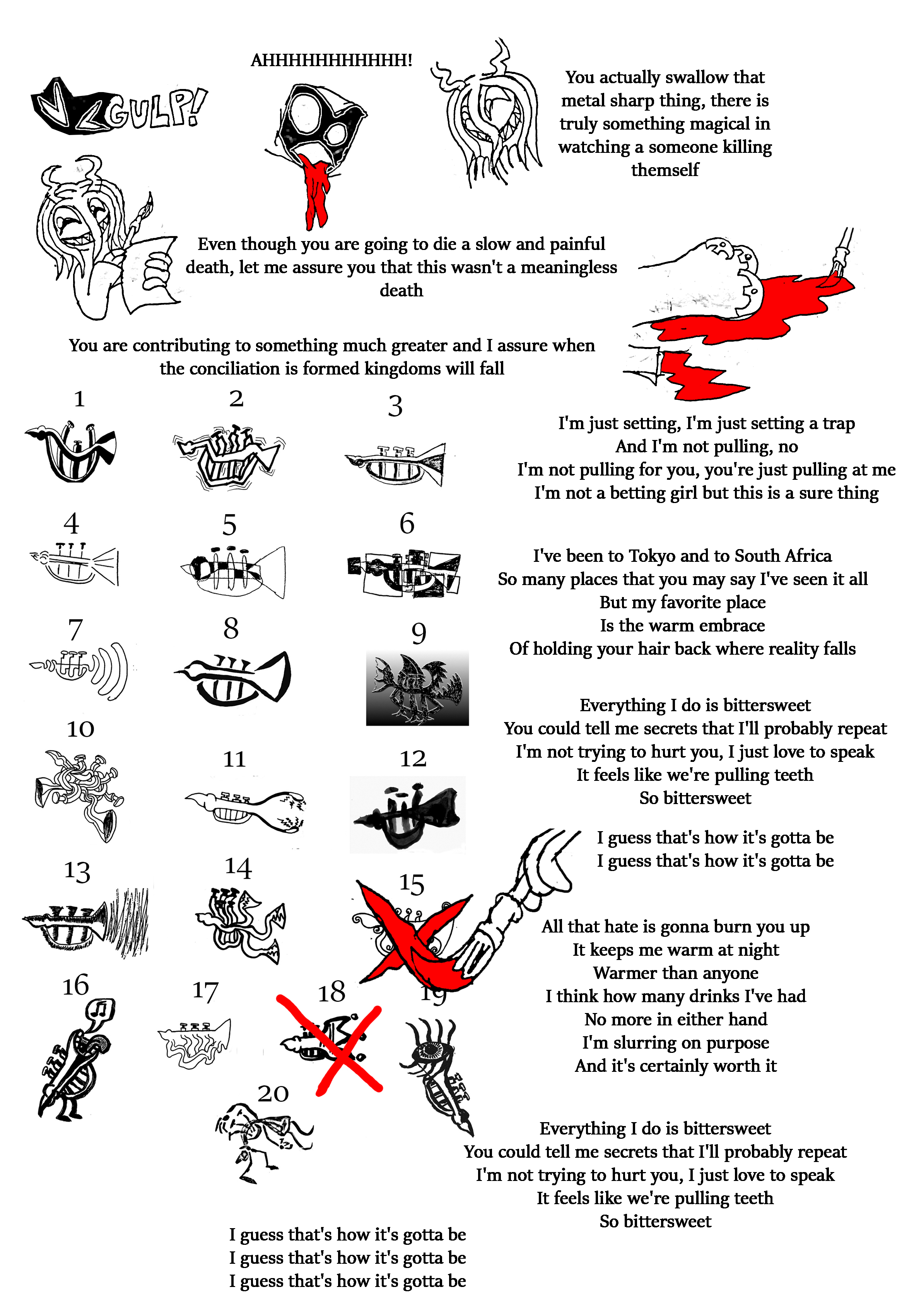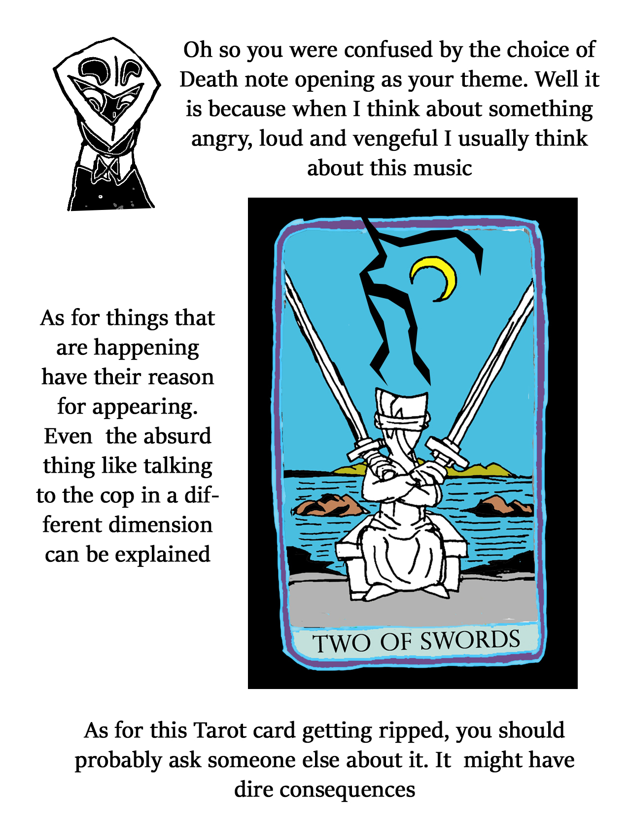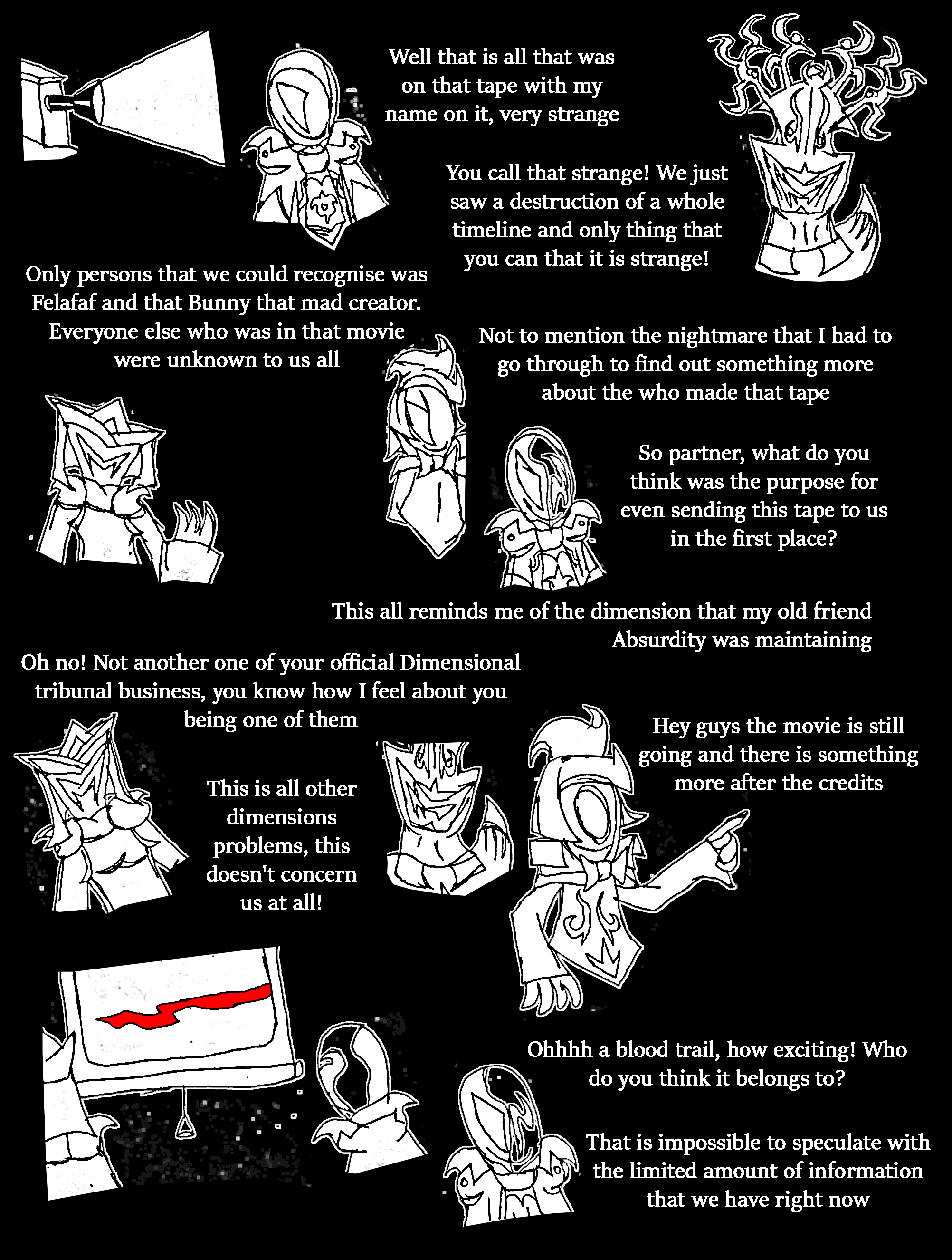 Sixth: you might not like what I might say, but I think Falafaf is on her way to death soon. remember the paper with the horns and Essence crossed off one of them after future Falafaf died? I do not think that means only future Falafaf is dead, I think that applies to present Falafaf as well, and she is marked for death. That said, to keep yourself from getting clouded by deep emotions, I don't want you to get too attached to her anymore. I'm not saying don't talk to her, just be prepared for that outcome.