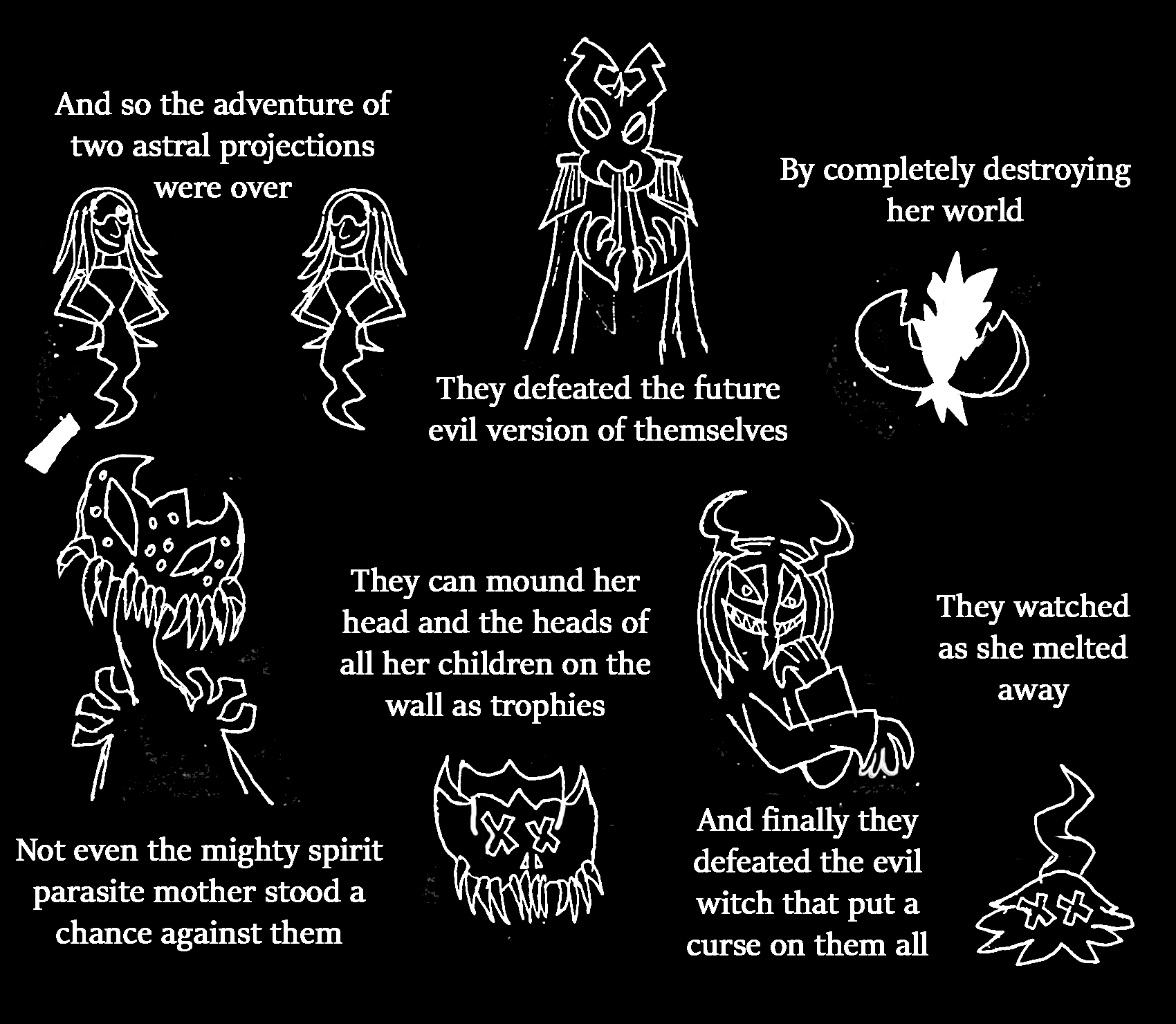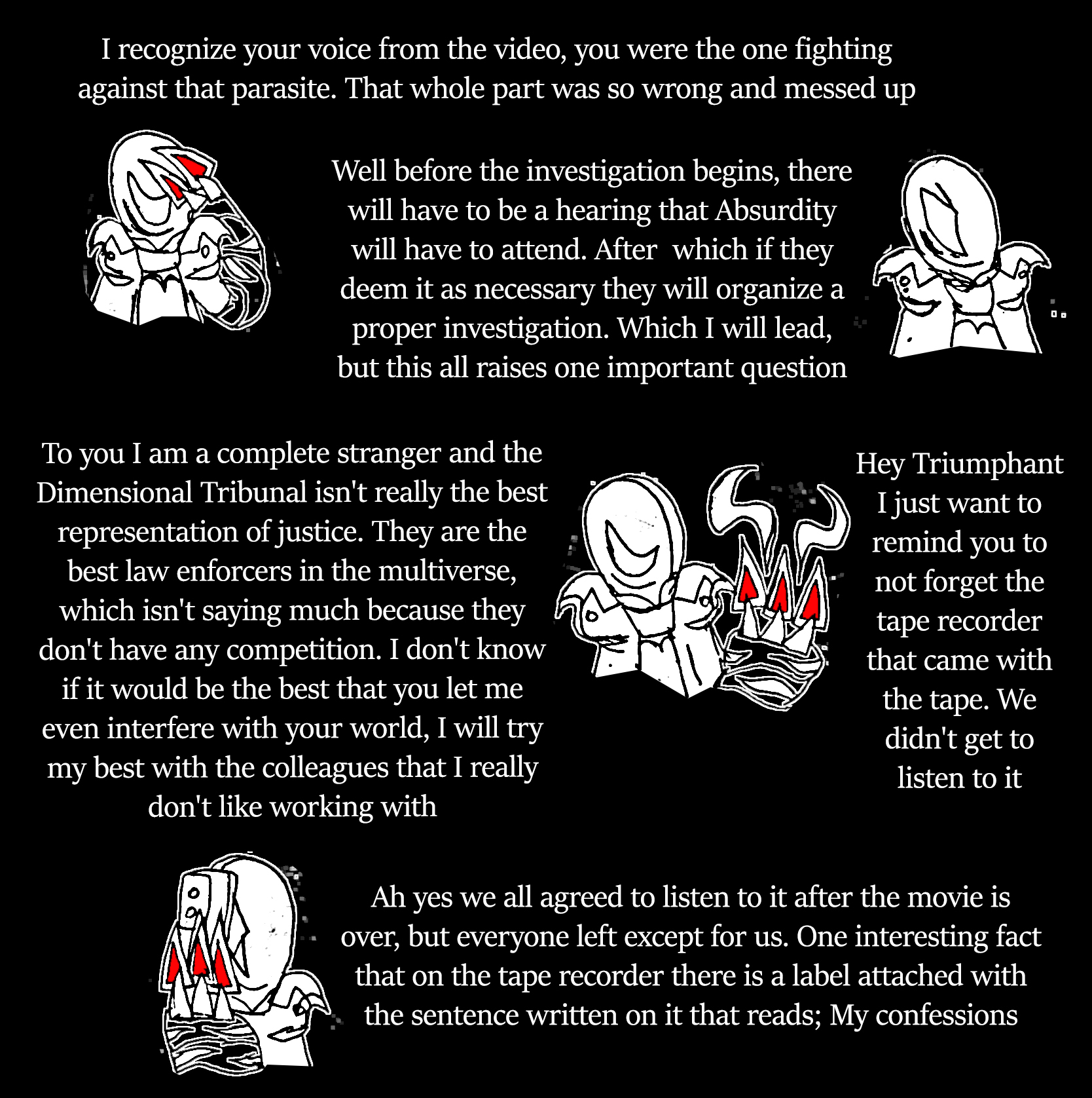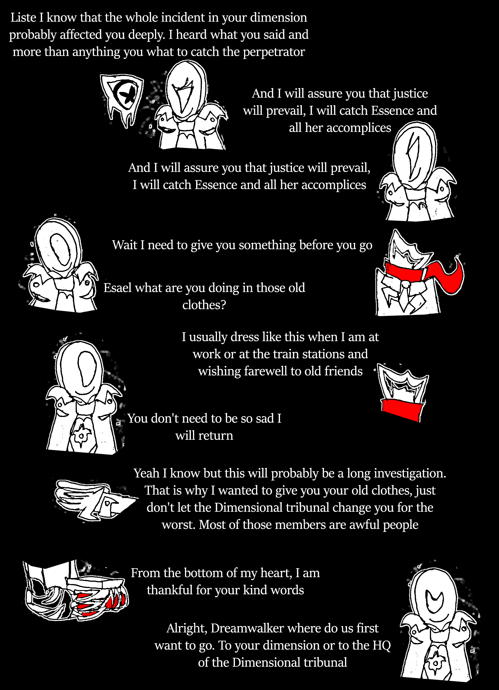 Finally: Dreamwalker, you're injured and weak. I'm worried that your condition is going to hurt Lucid in a lot of ways very badly... which is why I have a request for you: your guide has told you that you needed to consume memories to grow stronger right? well here is my request: I want you to consume my knowledge of fortune telling, and my memory of Falafaf. After what I've done to future Falafaf, I feel I don't deserve this power. I never even asked for it in the first place, I just gained it by accident. Me having and using those powers after what I've done will only fill me with guilt and be an insult to her while you on the other hand never wanted Falafaf dead. If you take and use my fortune telling knowledge, I can at least be happy that her powers will live on through you rather than someone who just threw her life away. will you please accept this offer?